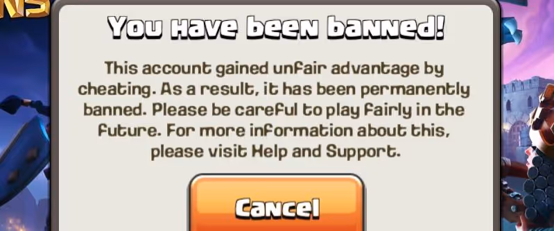 Las denuncias falsas pueden acarrear prohibiciones para el denunciante y el acusado. Por ejemplo, aunque digas algo fuera de contexto, tu amigo puede denunciarte, lo que conlleva un baneo temporal. Sin embargo, el denunciante también podría ser baneado si hace denuncias falsas. En algunos casos, los jugadores fueron baneados por no jugar durante más de 180 minutos. Los desarrolladores incluso revelan esta información en sus políticas de privacidad. Suponemos que quieren limitar el comercio de cuentas y otras prácticas. Al igual que las blasfemias, Supercell penaliza a las personas que utilizan diseños provocativos y vulgares durante la creación de bases. Lo único bueno es que la prohibición es temporal, y puedes arreglar la situación rápidamente. Usar software ilícito puede llevar potencialmente a un baneo, ya que presume que quieres obtener una ventaja injusta. Los programas para hacer trampas son los que más problemas causan a la gente, pero también podrían banearte por jugar en servidores de terceros (que también utilizan software externo). La mayoría de los baneos se deben a los programas para hacer trampas.