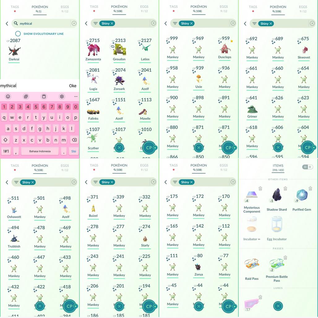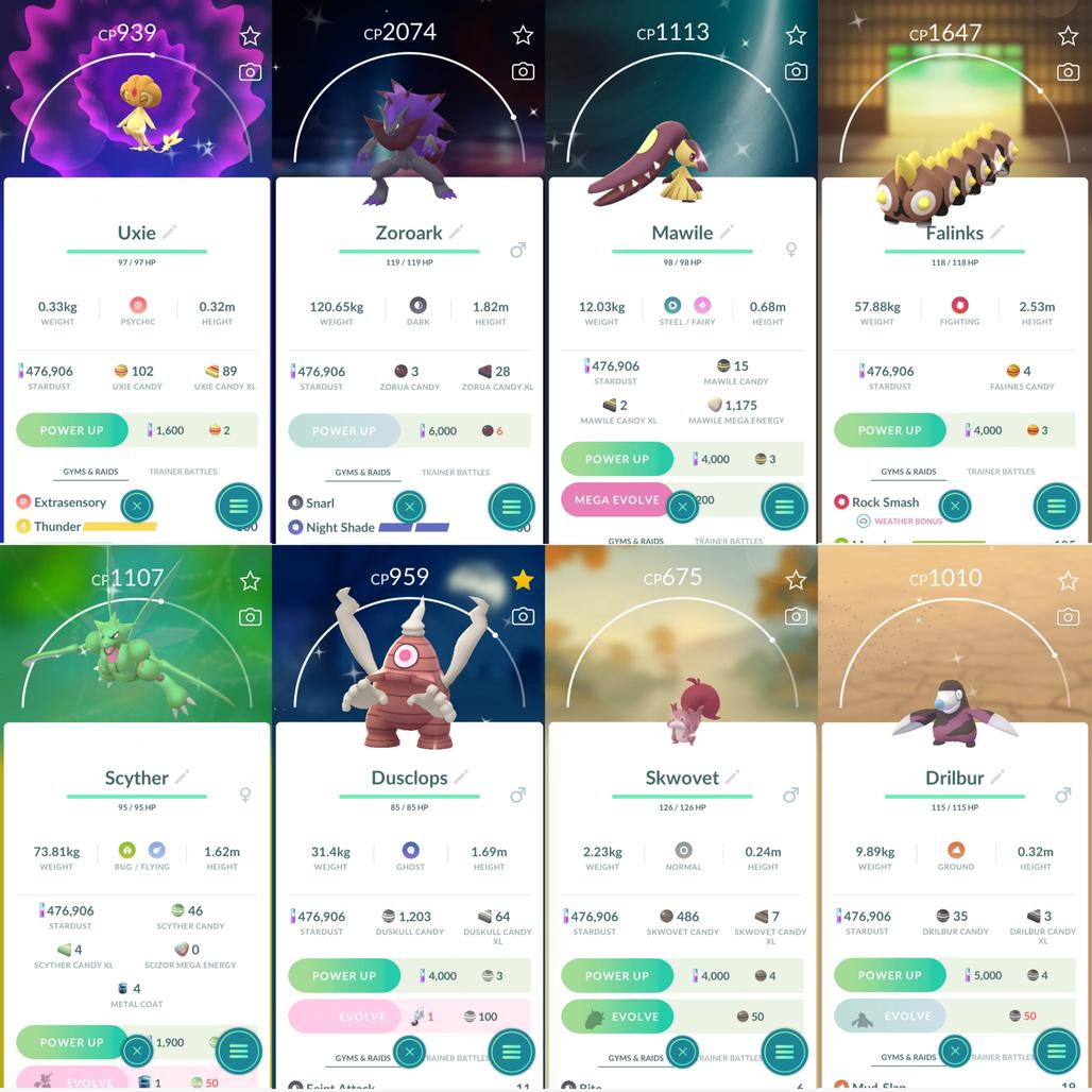 Shiny: zamazenta, mega latios, groudon, lugia, azelf, uxie, zoroark, mega mawile, falinks, scyther, dusclops, skwovet, drillbur, zorua