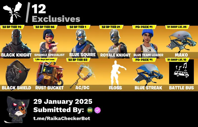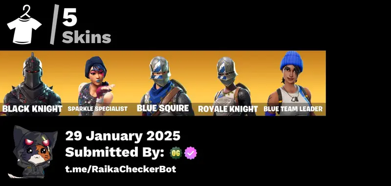 (PC-PSN-XBOX) 5 skins Black Knight Sparkle Specialist Blue Squire Royale Knight Blue Team Leader Mako