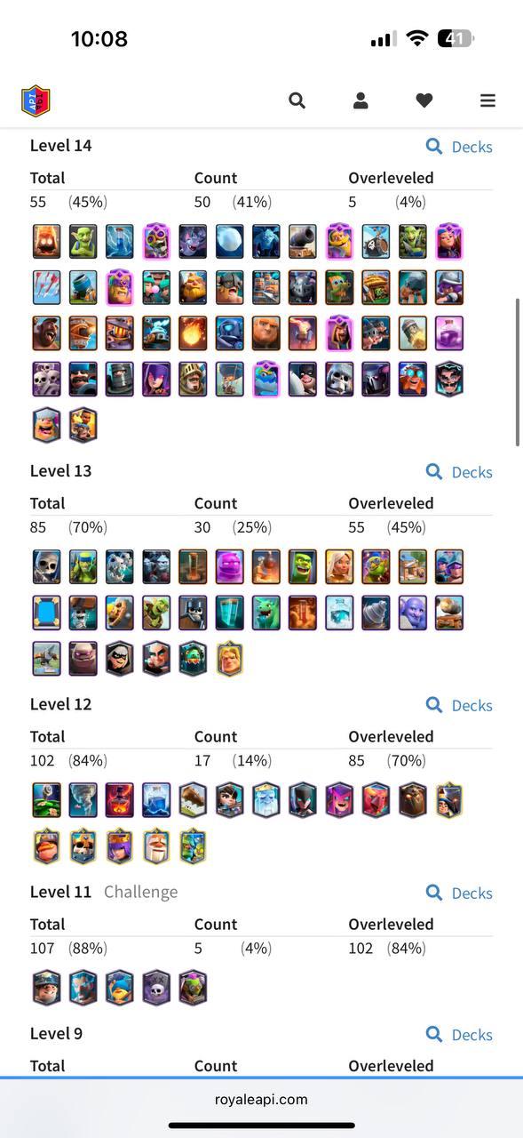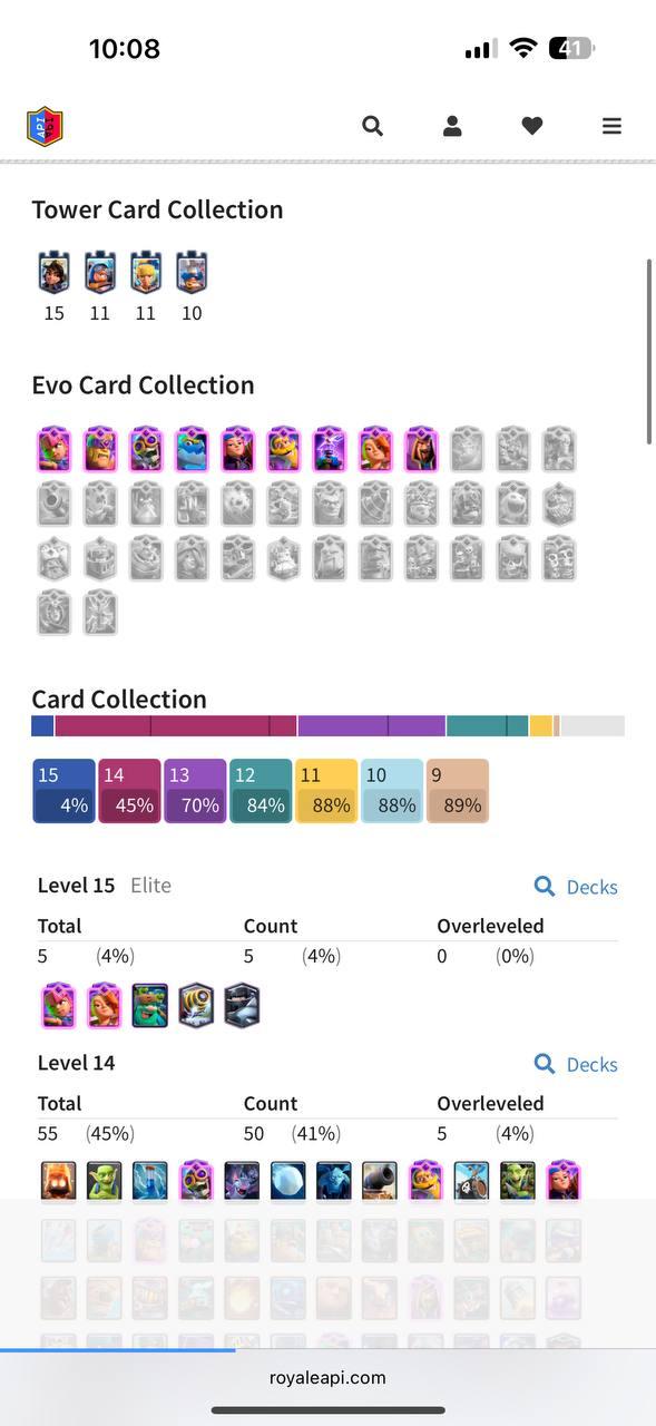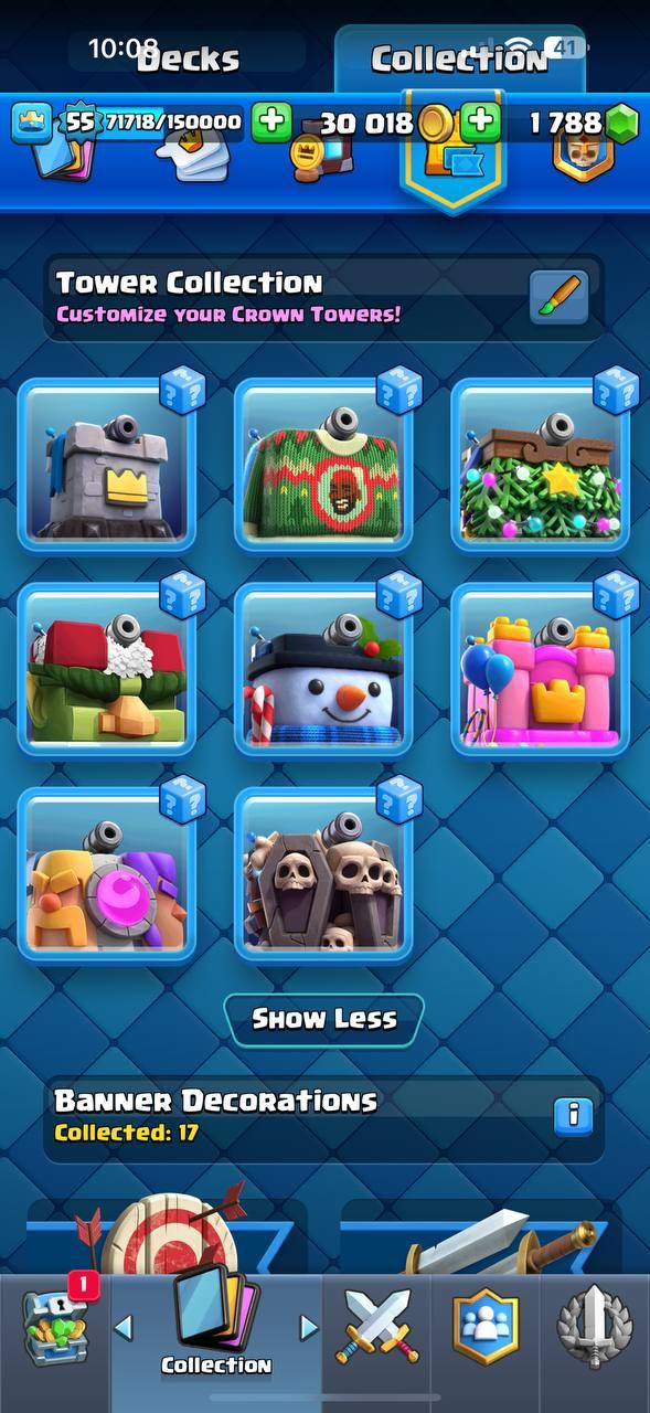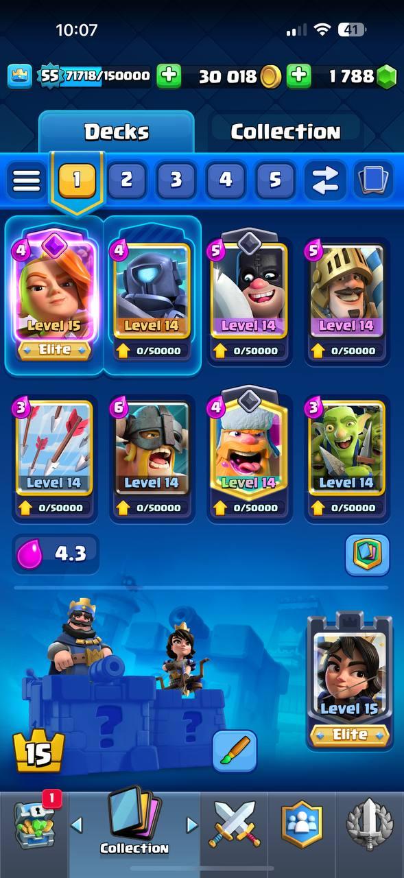 9 YEAR BADGE 💎 55 MAX CARDS 💎 ARENA 24 [] 5 ELITES [] 9 EVO [] 9500 TROPHIES [] XP55 [] KT15 [] 8 SKINS [] 37 EMOTE