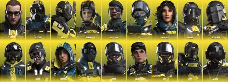🟢Tachanka, Fuse, Rook, IQ, Jager, Capitao, Gridlock, Nomad Sledge, Doc, Ela, Alibi, Smoke, Lion, Vigil, Hibana, Finka and Pulse 🟢