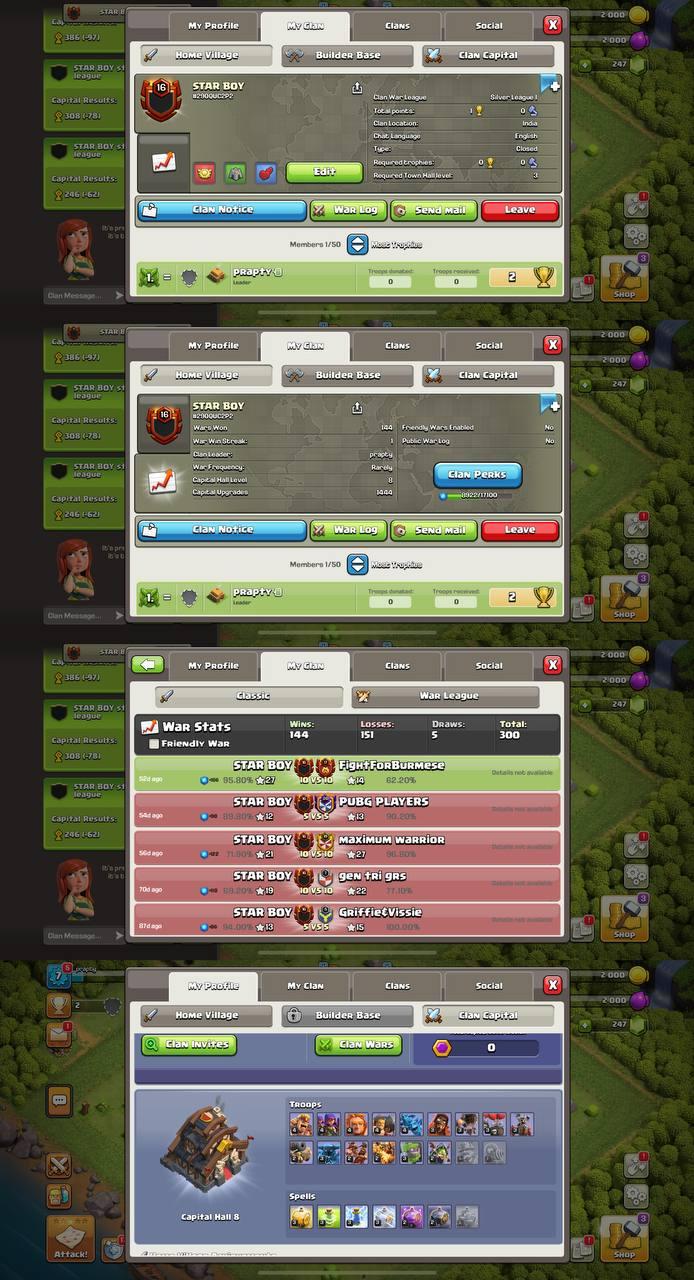 CLAN LV 15 | NICK NAME (LEGENDWAR30)🔥 | WAR WIN 189⭐ - WAR LOSE 141 | CAPITAL LV 8 | WAR LEAGUE GOLD III