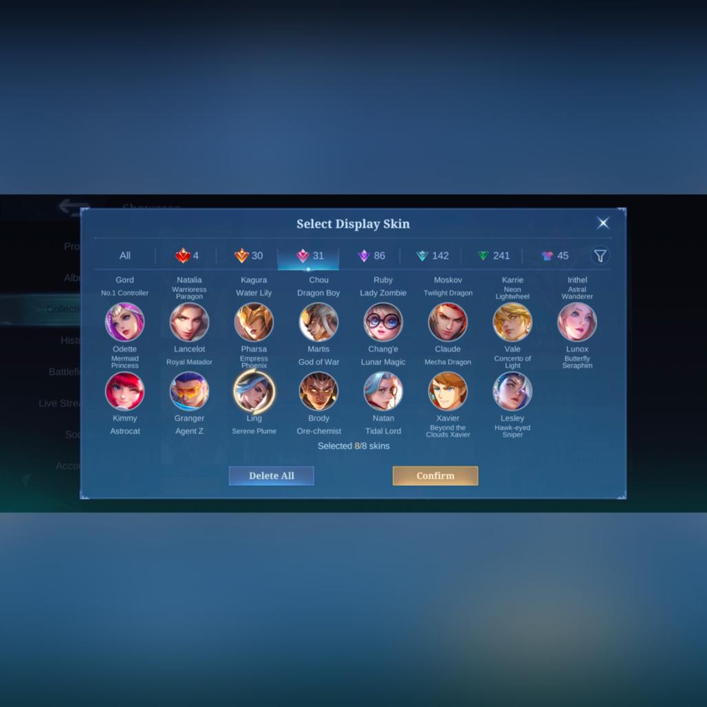 LUCKY BOX: MARTIS KIMMY CALUDE LANCELOT ODETTE CHANG-E LUNOX IRITHEL MOSKOV RUBY CHOU FREYA HAYABUSA FANNY ZILONG EUDORA KARINA ALICE