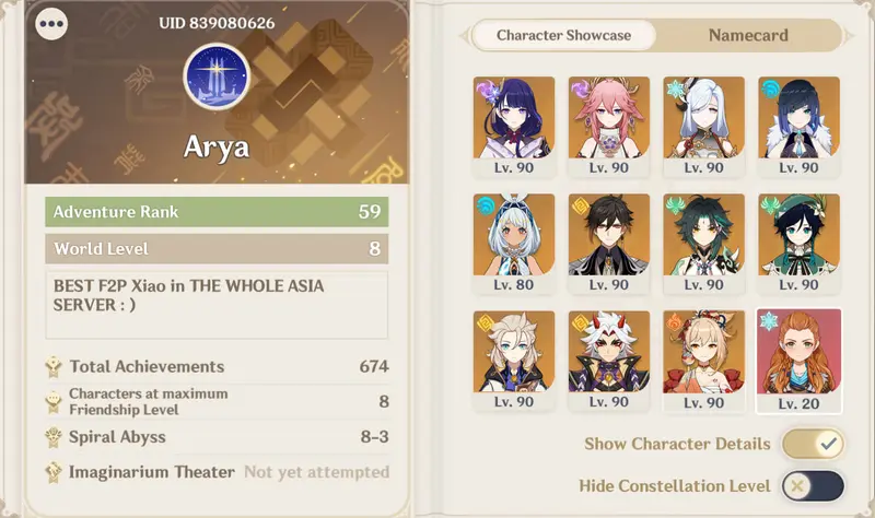 AR59 | ASIA [Male] | C1ZHONGLI - RAIDEN - YAEMIKO - XIAO - VENTI - AYATO - ALOY - YELAN - MUALANI | 21 5-STAR CHARS |