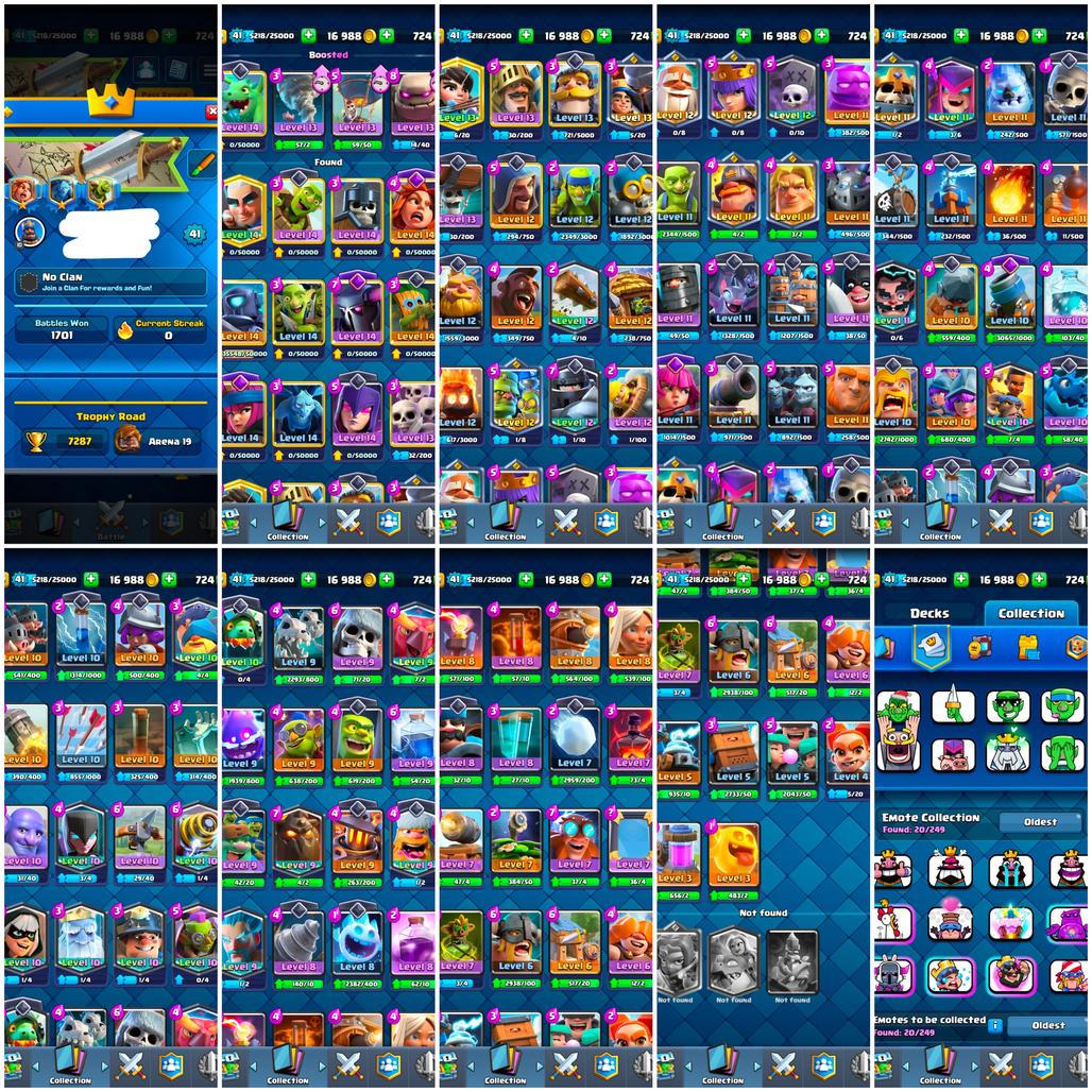 CHEAPEST | LVL 41 | 12 MAX | 5 EVO | 700 GEMS | ARENA 19 | 7287 TROPHY | 2 YEAR OLD BADGE AND EMOTES