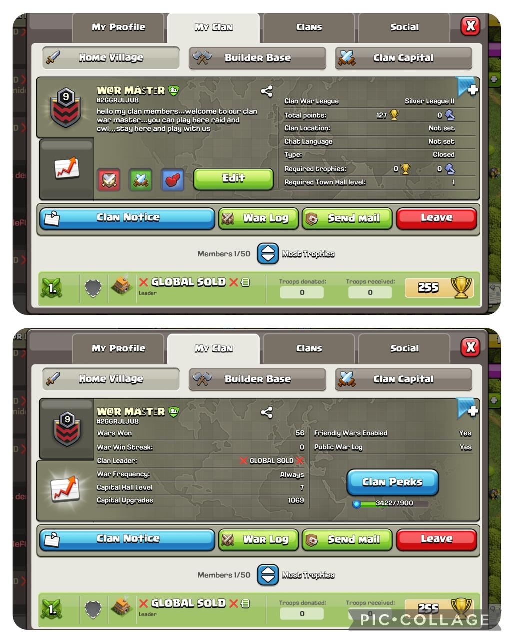 [] Clan Level--09 [] Clan Name- WAR MASTER [] Capital Hall-07 [] CWL-Silver League-3 | Positive War Log--Win 54--Lose 34