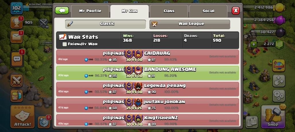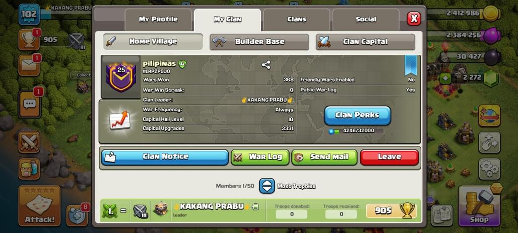 CLAN LV 25 | NICK NAME (PILIPINAS)🔥 | WAR WIN 368⭐ - WAR LOSE 218 | CAPITAL LV 10 | WAR LEAGUE CRYSTAL I