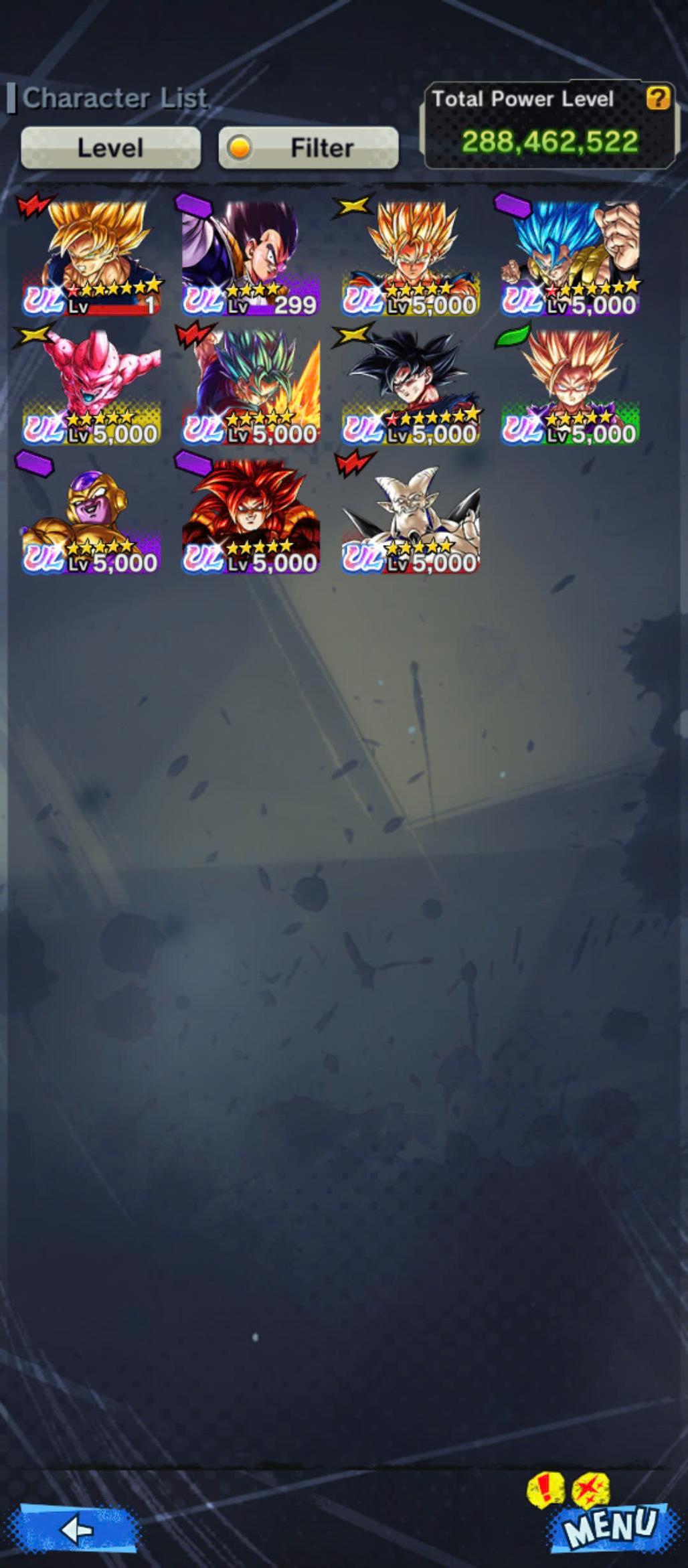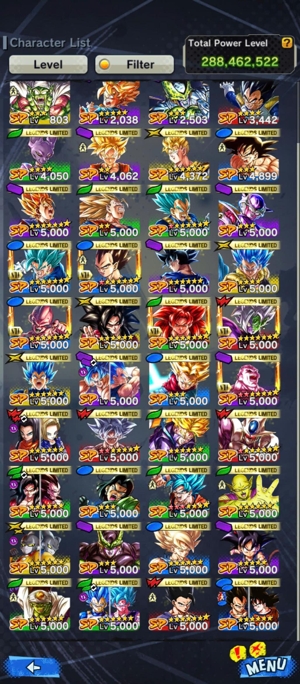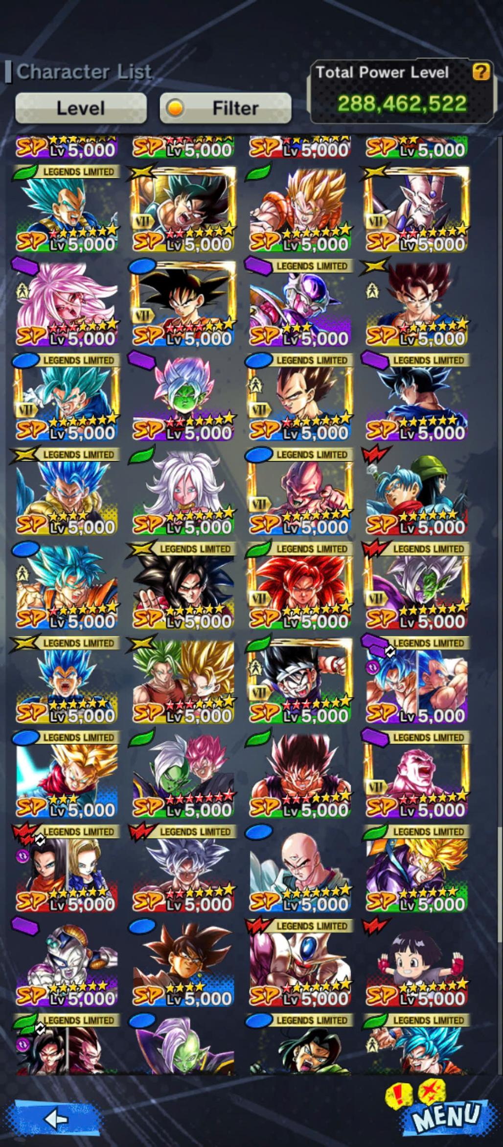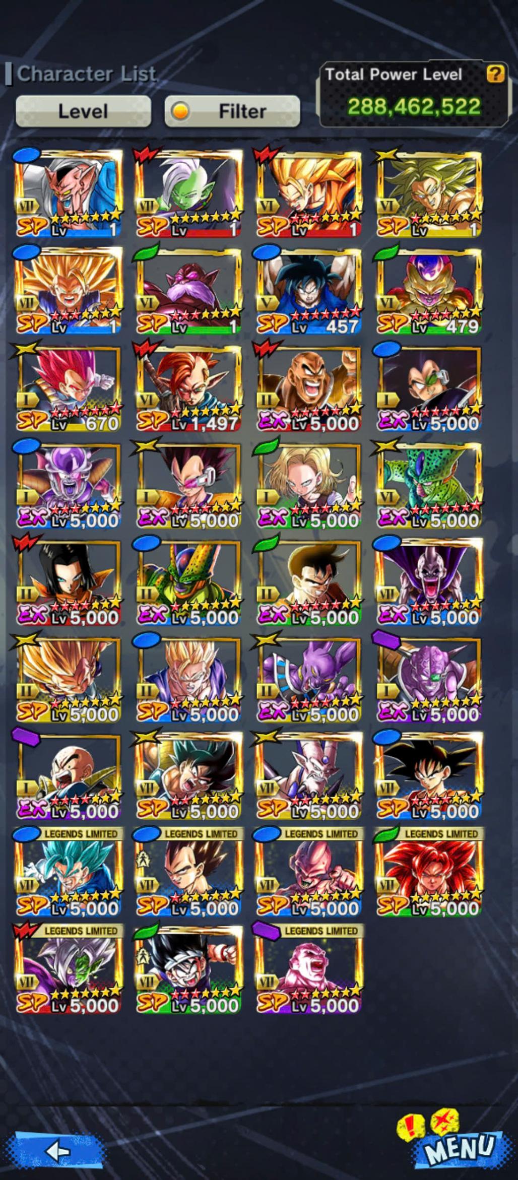D661-Vip Account-14 UL(Cell+Majin Vegeta+Goku Uis+Beast Gohan+Vegito+Hit+Gogeta)+36 Legend+Vip Equipment+Good Team PVP