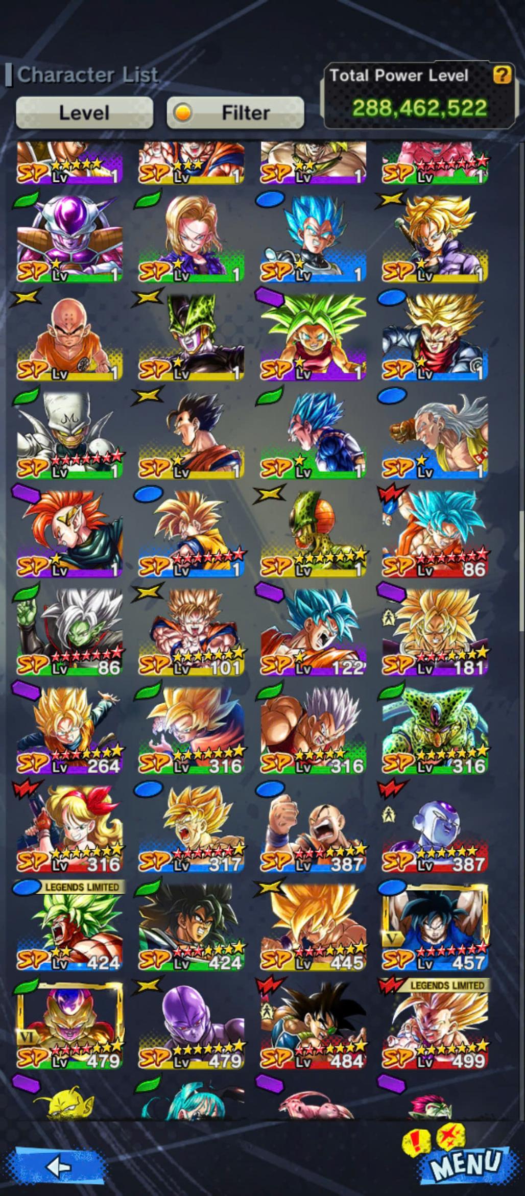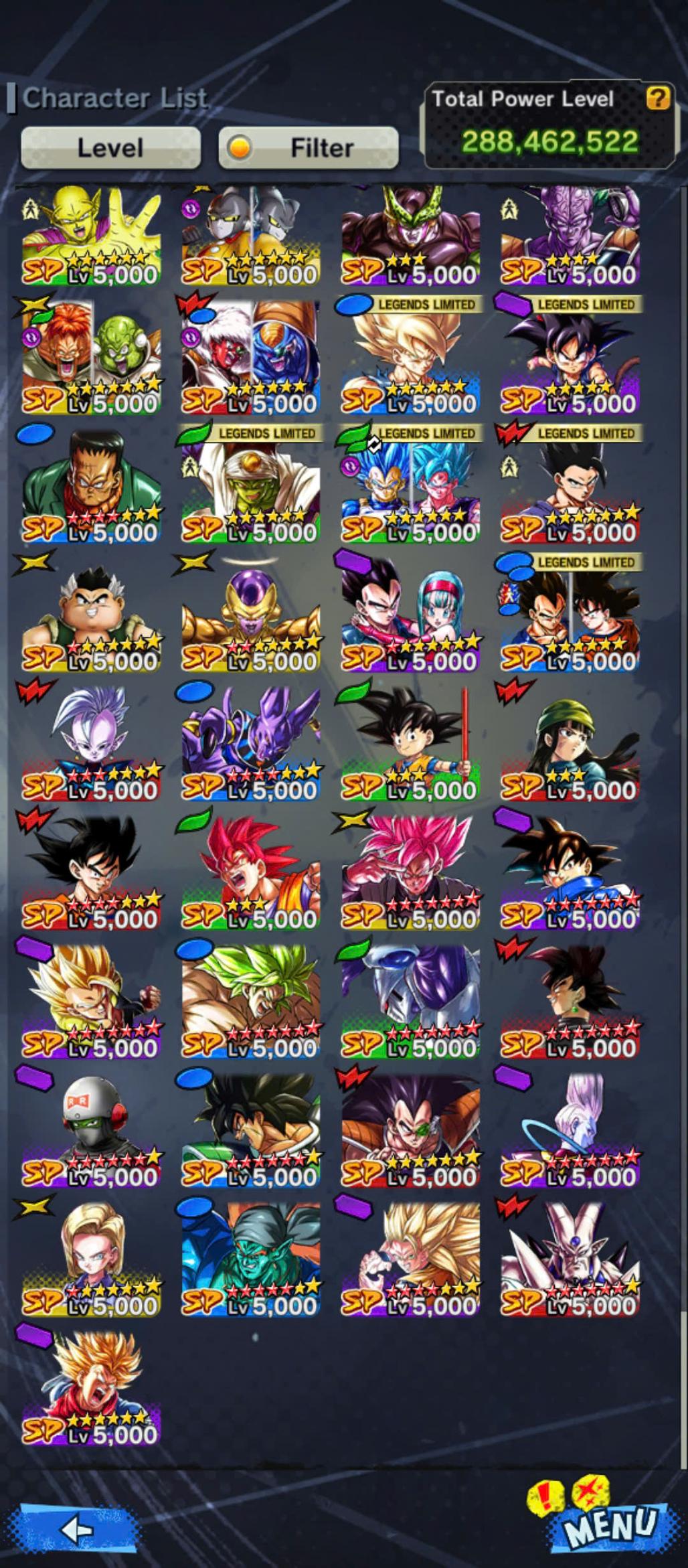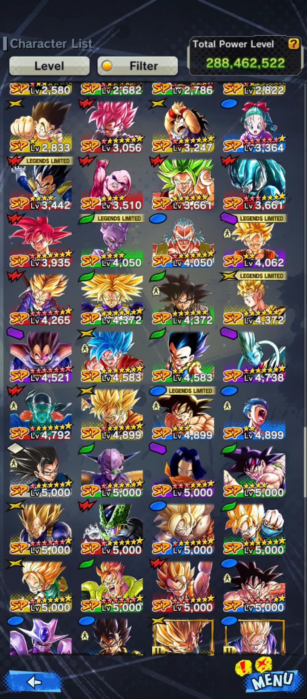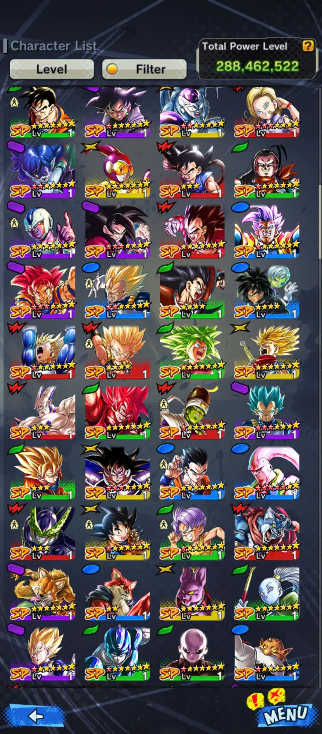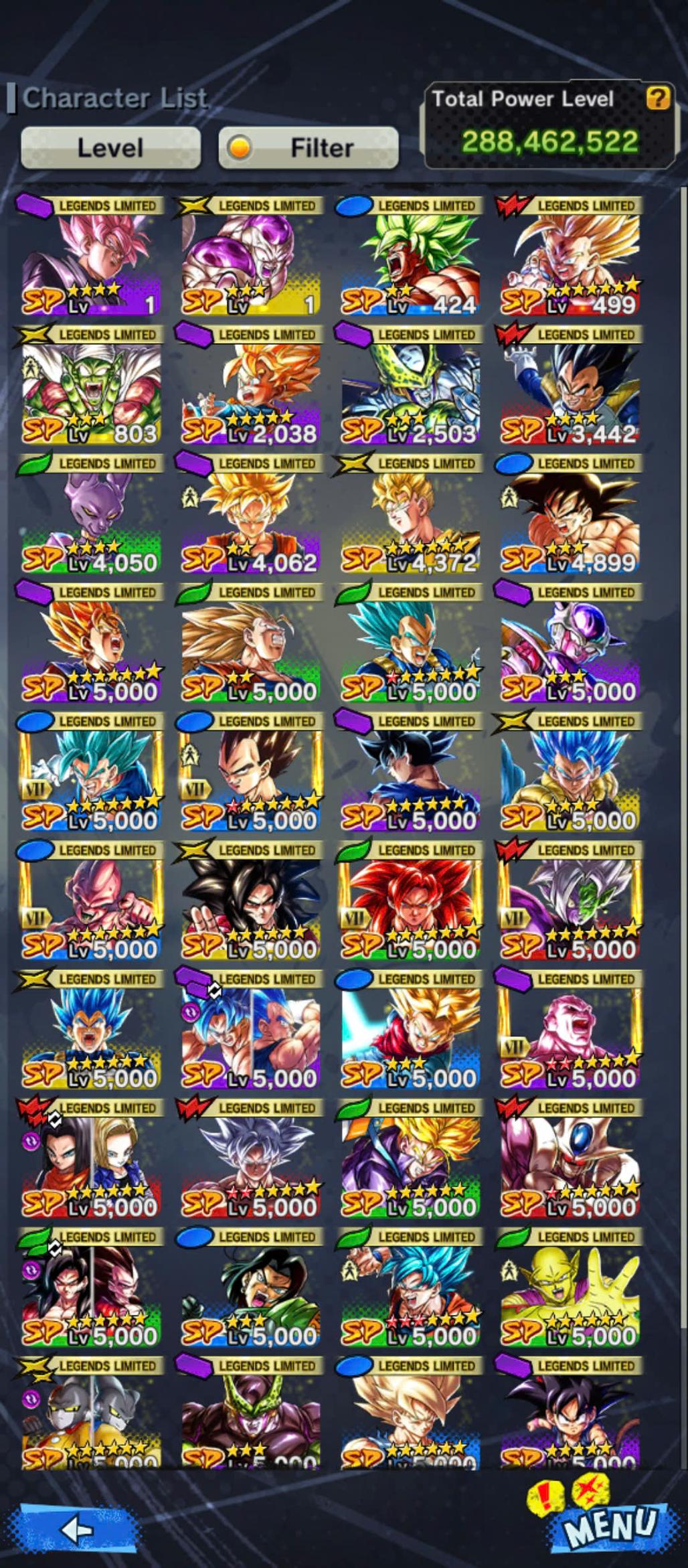 D661-Vip Account-14 UL(Cell+Majin Vegeta+Goku Uis+Beast Gohan+Vegito+Hit+Gogeta)+36 Legend+Vip Equipment+Good Team PVP
