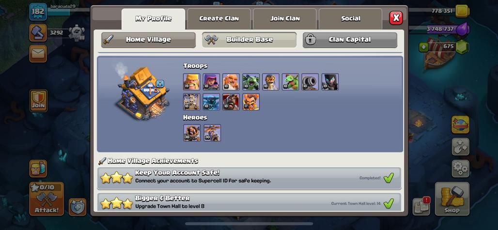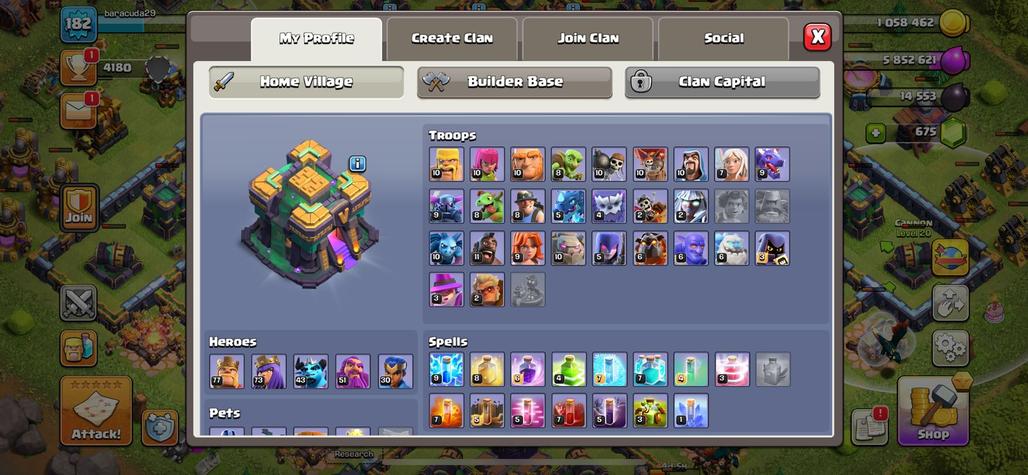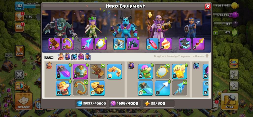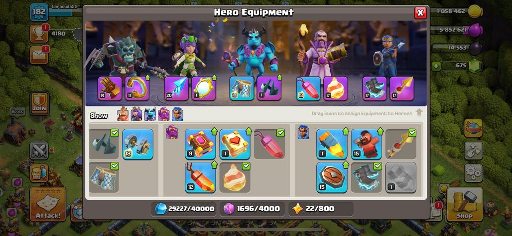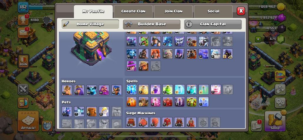 • Level Barbarian King: 77 (1 LEGENDARY 1 GOLD)