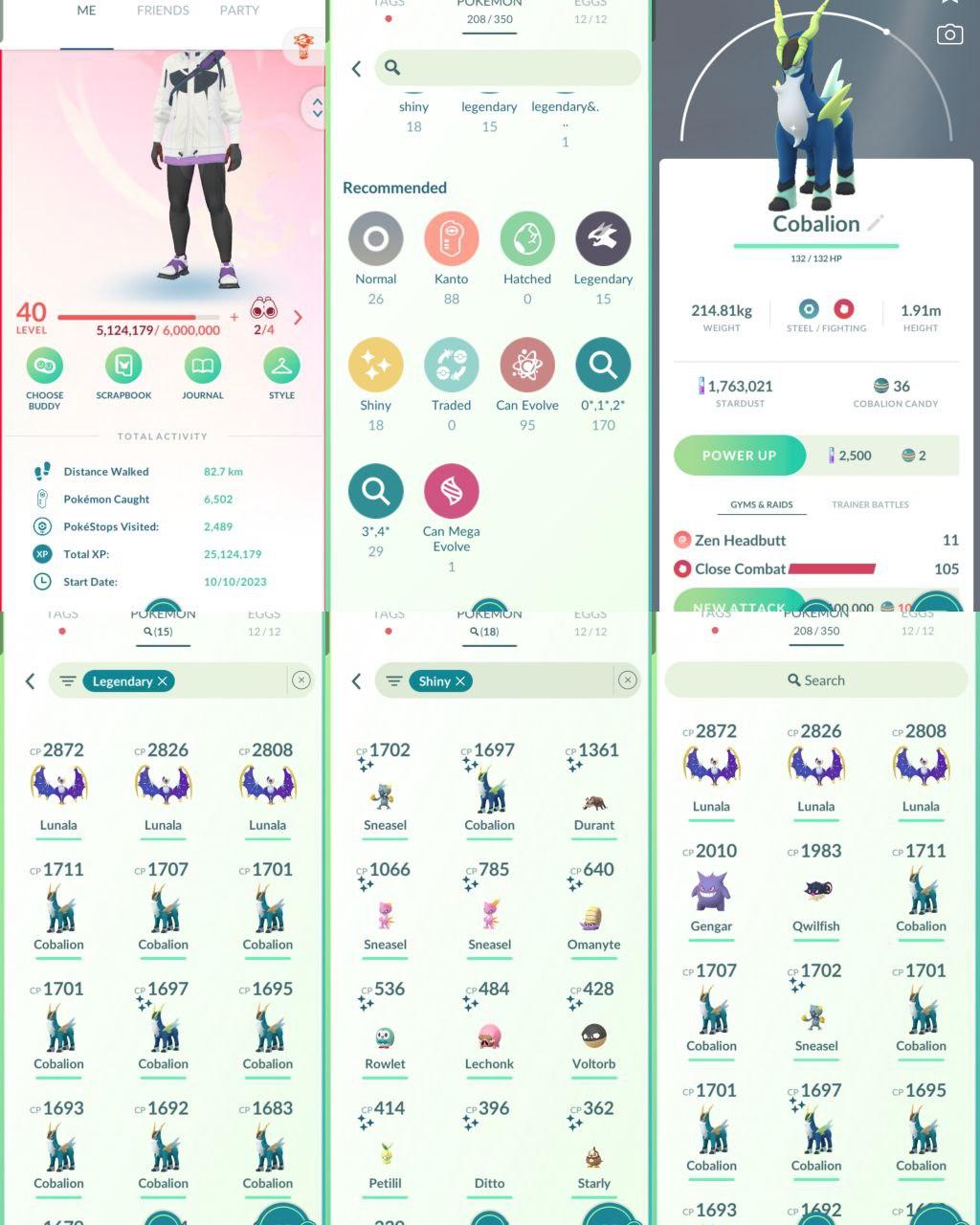 [G108] LEVEL 40 ACCOUNT | 18 SHINY | 1 SHINY LEGENDARY | 3 HUNDOS | 15 LEGENDARY | SHINY COBALION | HIGH CP LUNALA LINE-