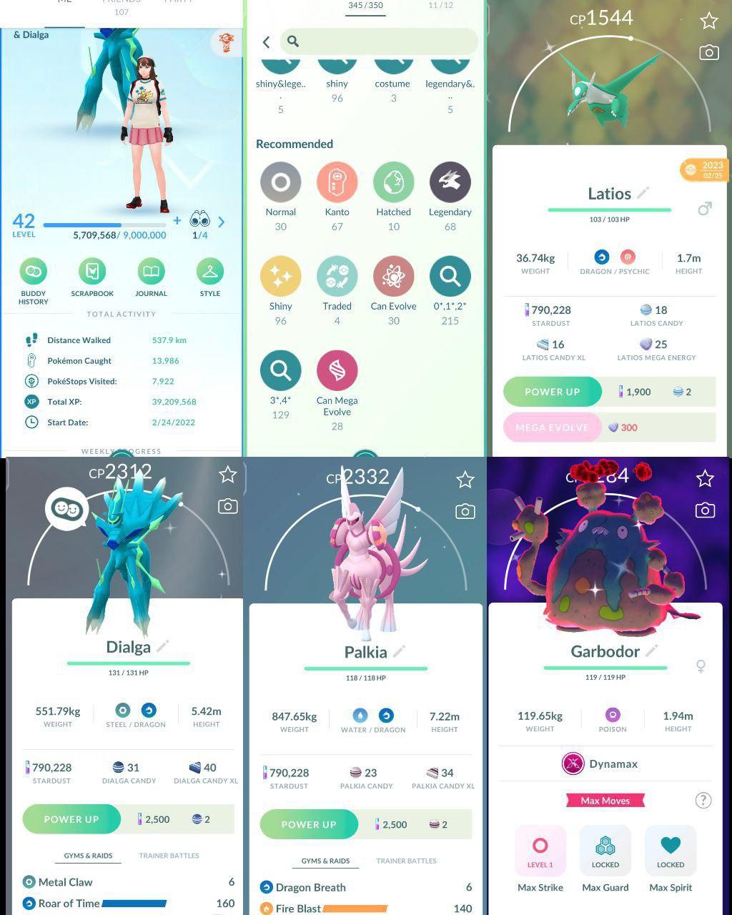 [G160] LVL 42 STACKED ACCOUNT I SHINY DYANMAX GARBODOR (TRADABLE) RARA I 96 SHINY I 68 LEGENDARY I SHINY DIALGA I SHINY