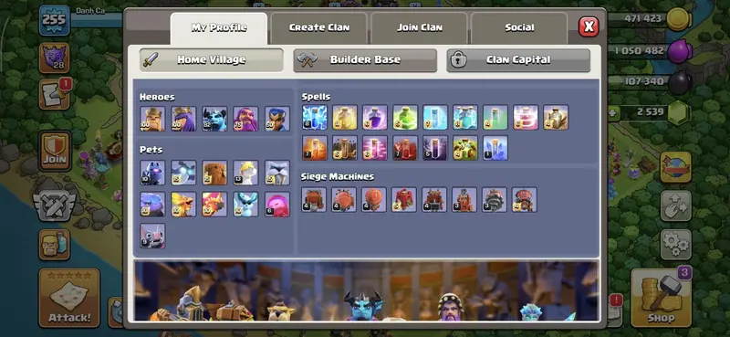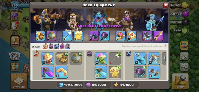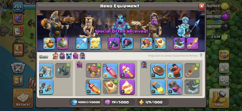 TH 17 DEFENCE WALL MAX HERO [100-100-82-75-50] E-BOOST MAX R-SPEAR MAX 6 EPIC EQUIPMENT | 553 MEDEL | BUILDER BASE MAX