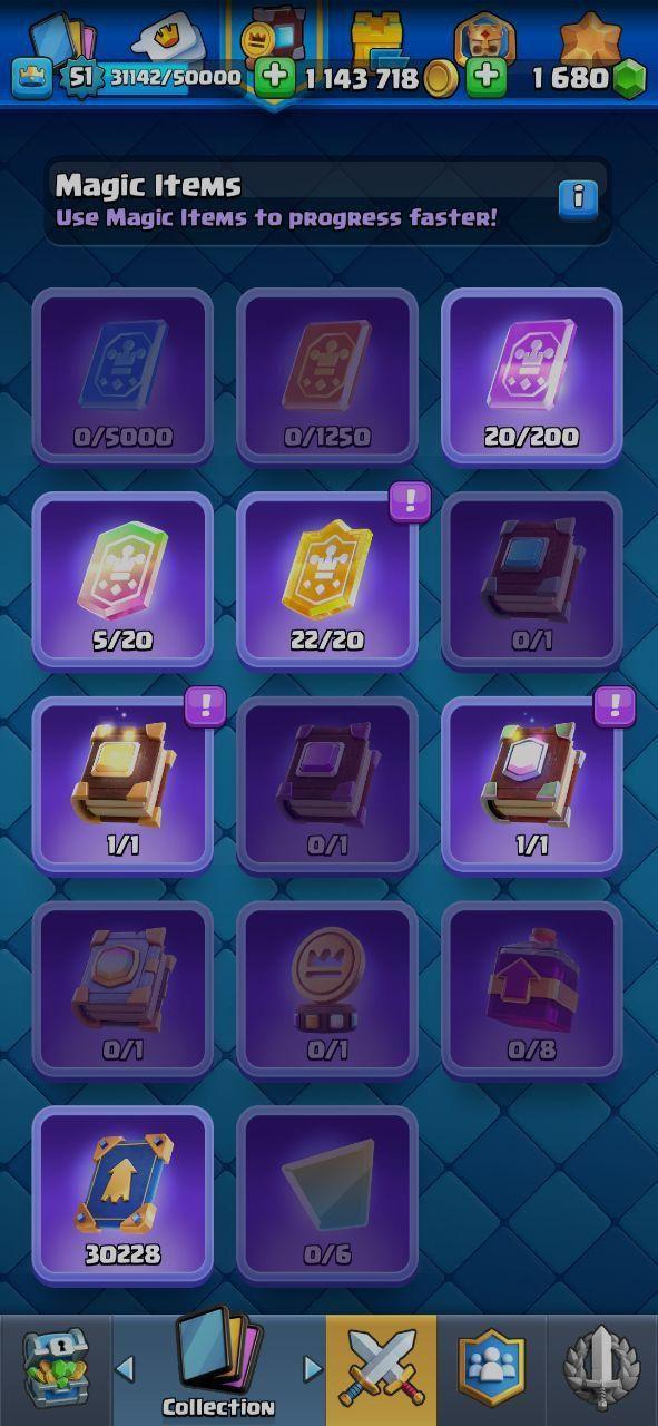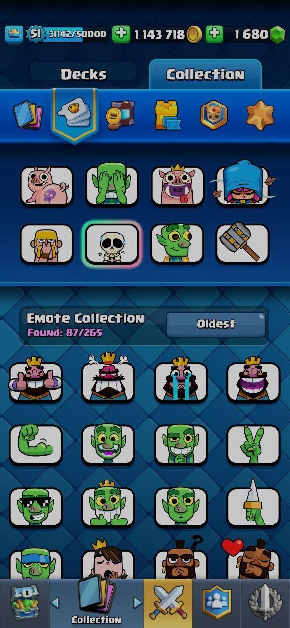 KT14 XP51 | 25 CARDS MAX 3 ELITE | 7 EVOLOTIONS | 87 EMOTES | 1680 GEMS | 1.14 M GOLD | INSTANT DELIVERY