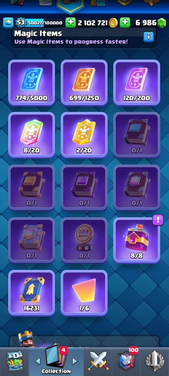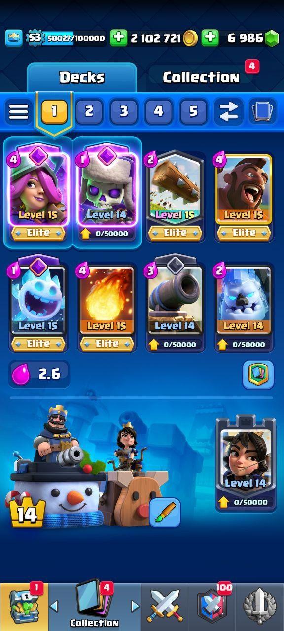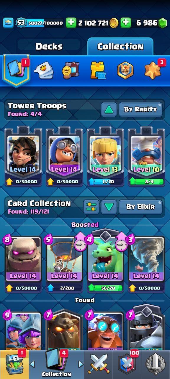 KT14 XP53 | 36 CARDS MAX 5 ELITE | 15 EVOLOTIONS | 44 EMOTES | 6986 GEMS | 2.1 GOLD | INSTANT DELIVERY