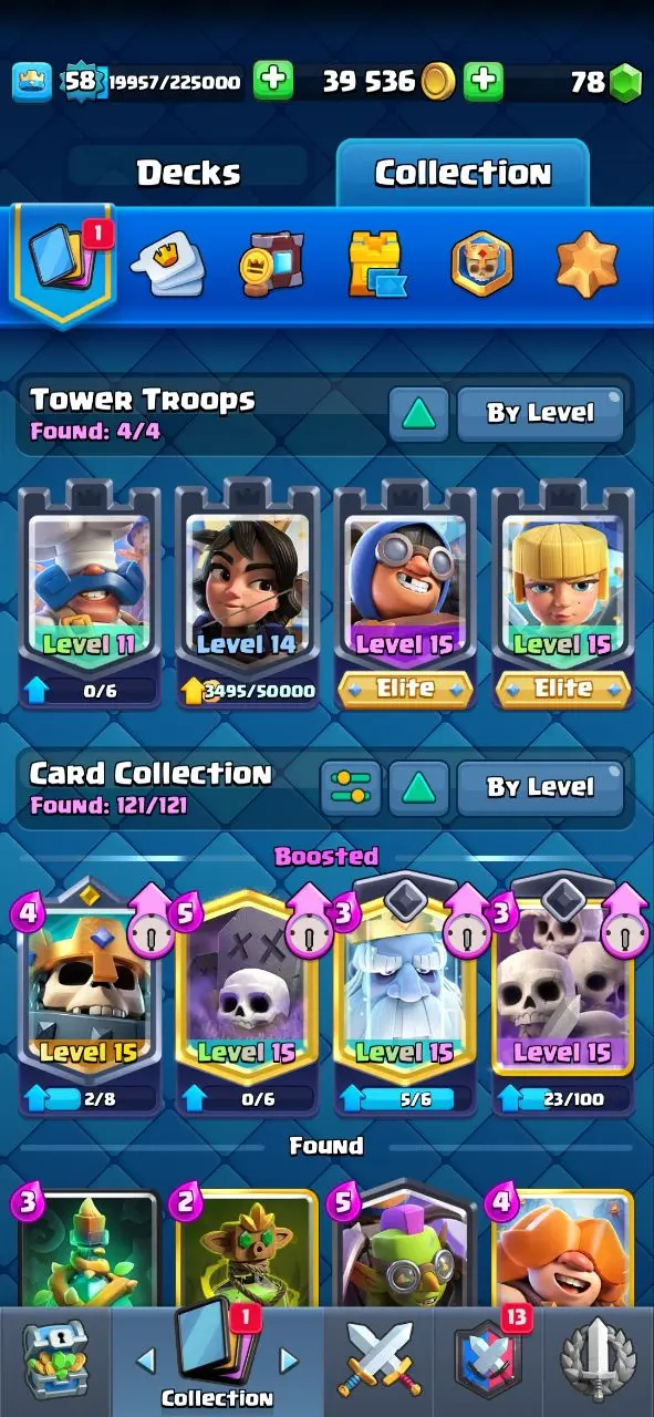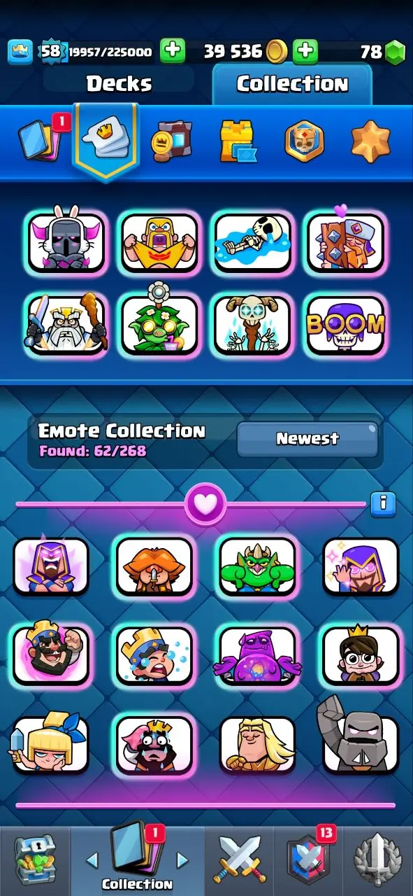 🔥KT15 XP58🔥 | 34 MAX 15 ELITE | 12 EVOLOTIONS | 10000 TROPHIES | 62 EMOTES | RENAME FREE | 78 GEMS | INSTANT DELIVERY