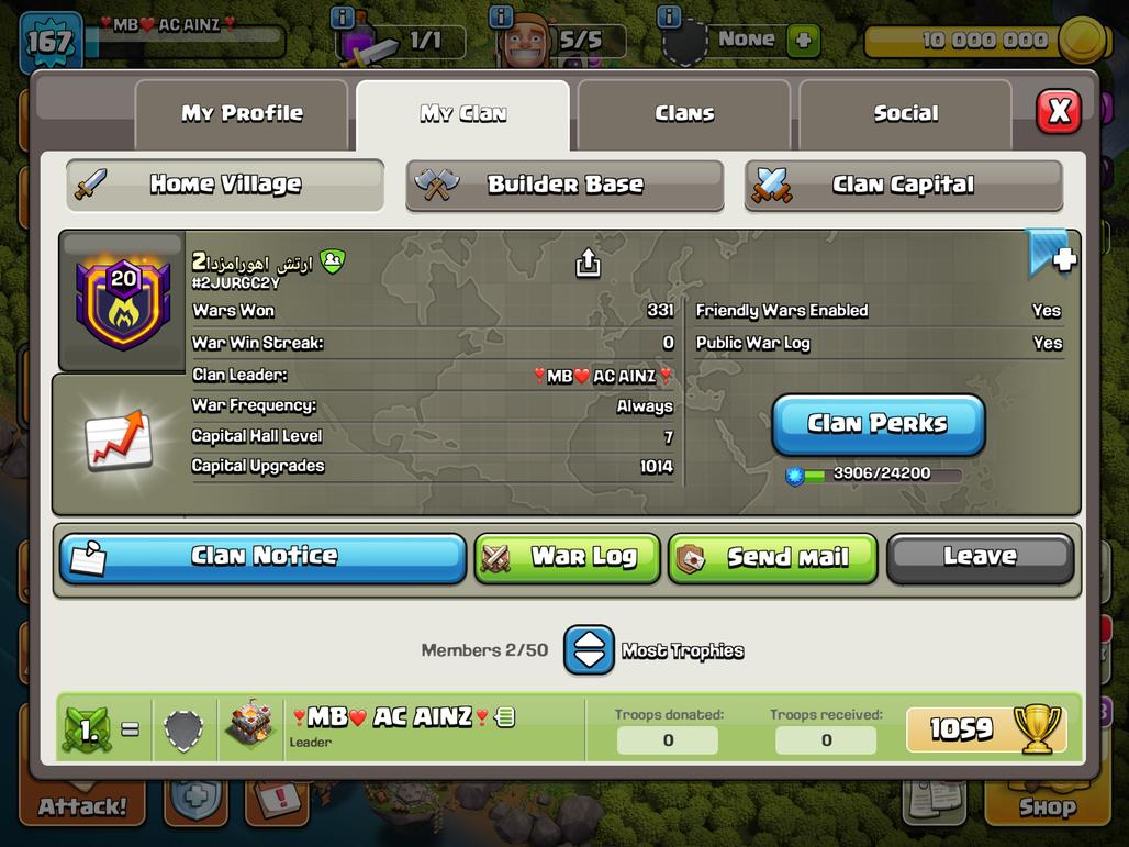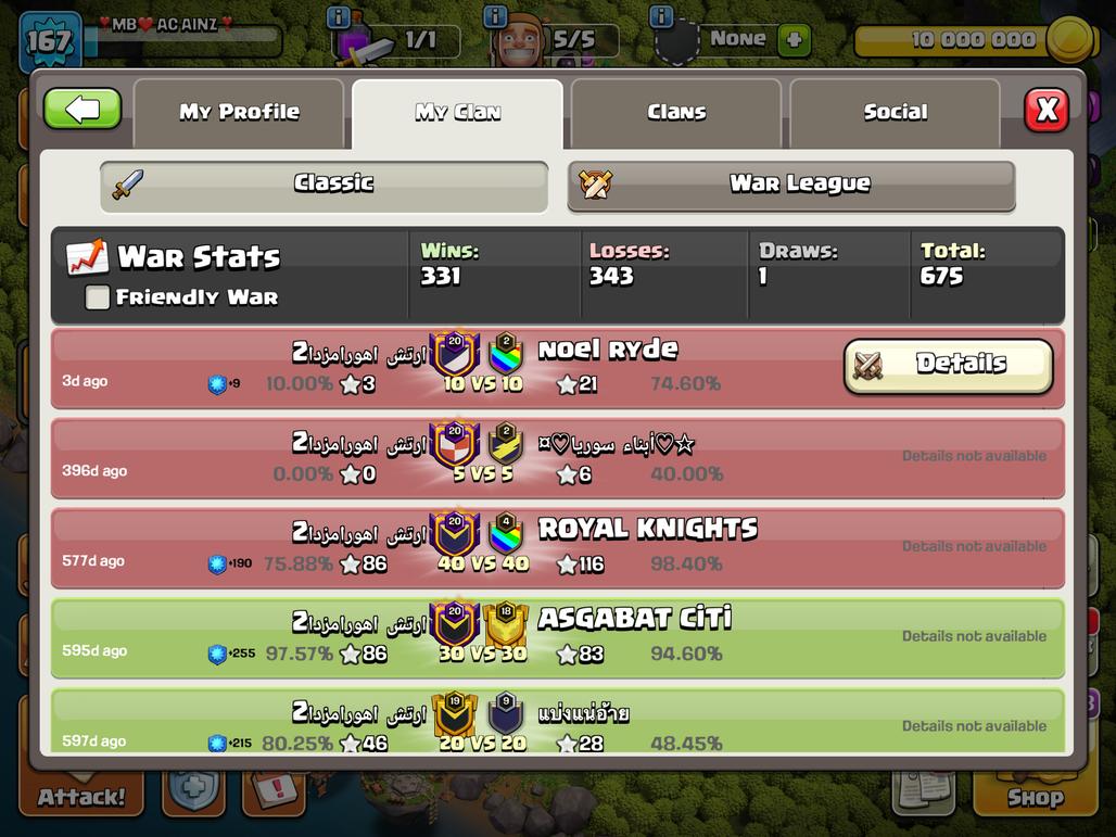 [] Clan Level--19 []💥Name--LOVE IS WAR💥[] Capital Hall-9 [] Positive War Log--Win-282 [] Lose only 112 []