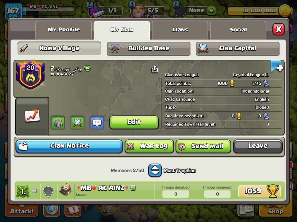 LEVEL 20 CLAN LEVEL 7 CAPITAL PEAK CRYSTAL III LEAGUE
