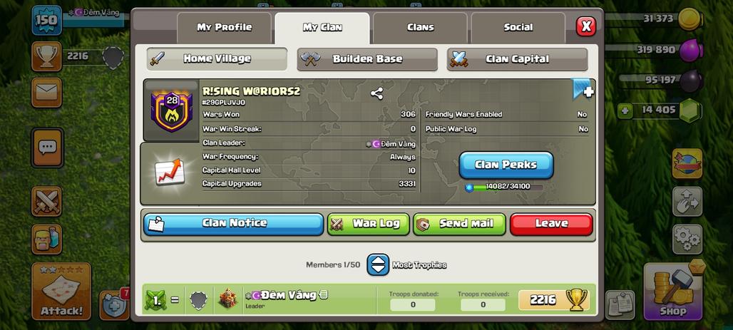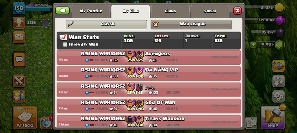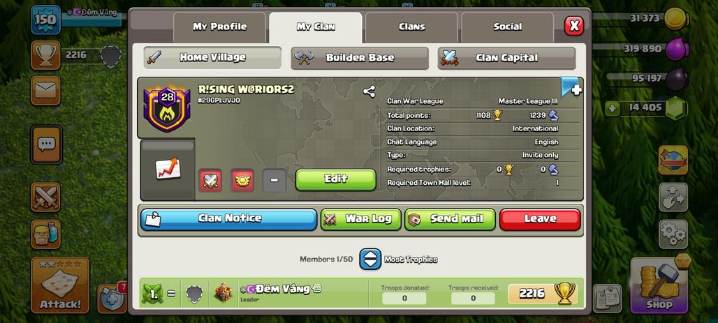 LEVEL 28 || NAME: R!SING WARIORS2 || CWL LEAGUE: MASTER 3 || CAPITAL HALL LEVEL: 10 MAX || NORMAL WAR LOG || INSTANT