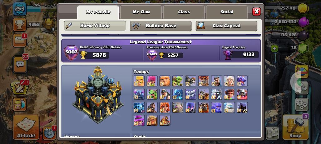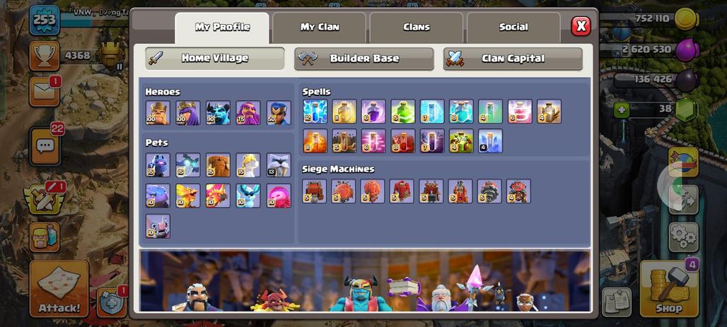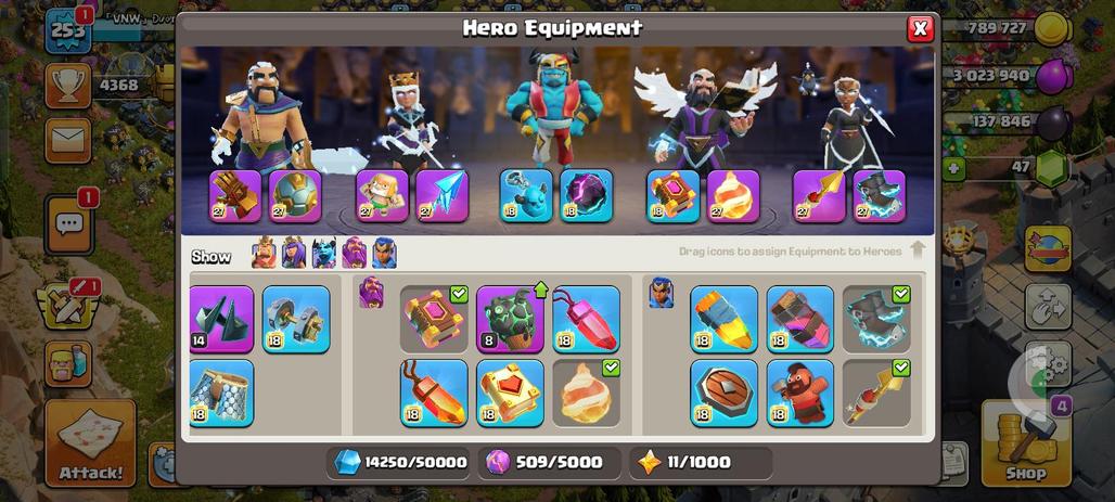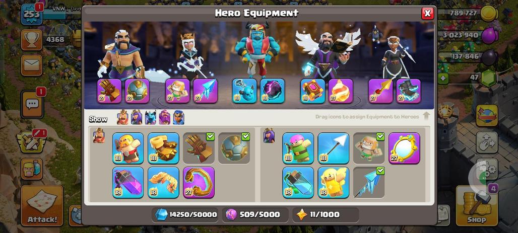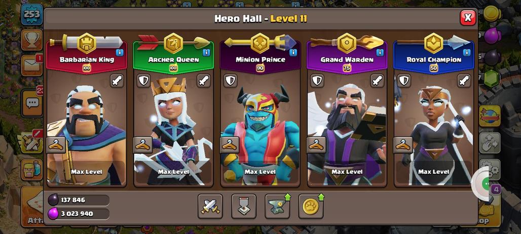 N!! FULLY MAX TH17!! 2X LEAGUE SKINS!! MAX EQUIPMENT!! HERO-100-100-90-75-50!! NOTHING LEFT!! 253-XP!!HUGE-SKINS-SCENERY