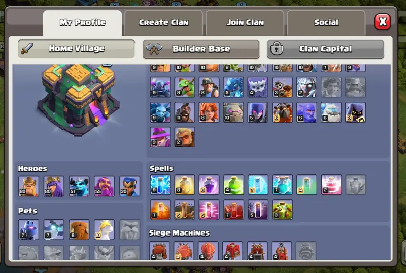 Th14 With Maxed Walls And Heroes | Bk80-Aq80-Gw55-Rc30 | 9 Hero Skins | 6 Builders | 1.5k War Stars