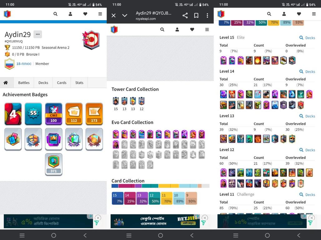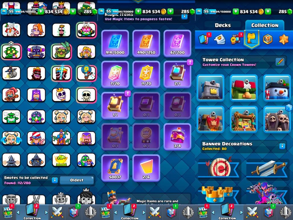🔥PREMIUM🔥12 EVO | KT 15 (55) | 30 CARD MAX | 10 ELITE | 112 EMOTE | 6 SKINS | NC FREE | 834k COINS | 11K TROPHY