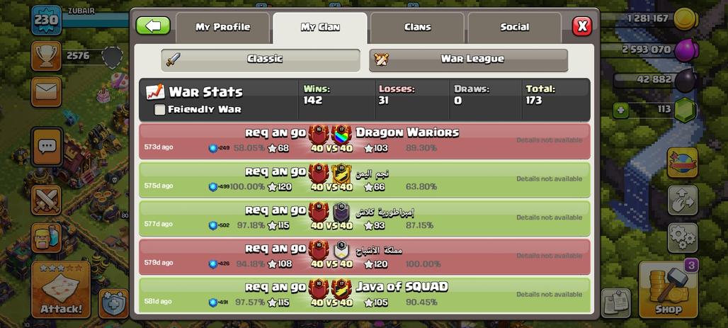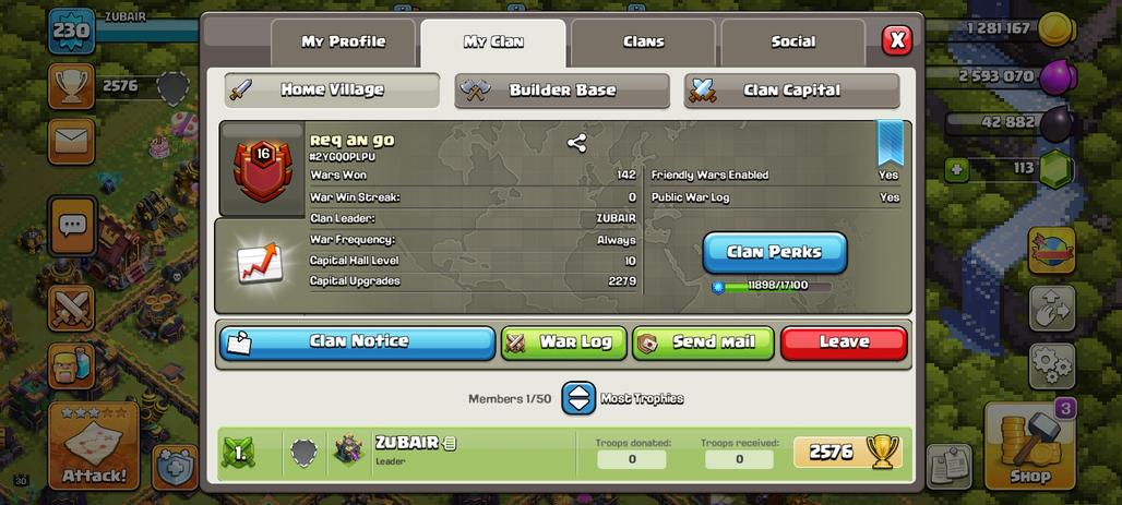 RAREST LEVEL 16 | RARE WAR LOG 142 WINS JUST 31 LOSSES | NAME: req an go | CWL LEAGUE: CRYSTAL 2 | CAPITAL HALL LEVEL:10