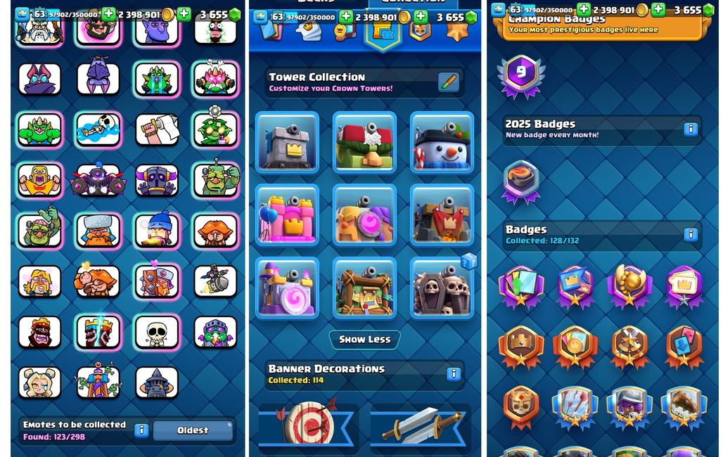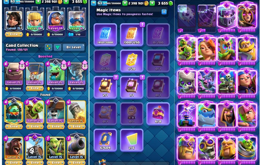 #RU457 | LVL63 | Cards: 39 Elite | 57 LvL 14 | 123 Emotes | Free Rename | 18 Evolved | Highest 11500 | 8 Tower Skin