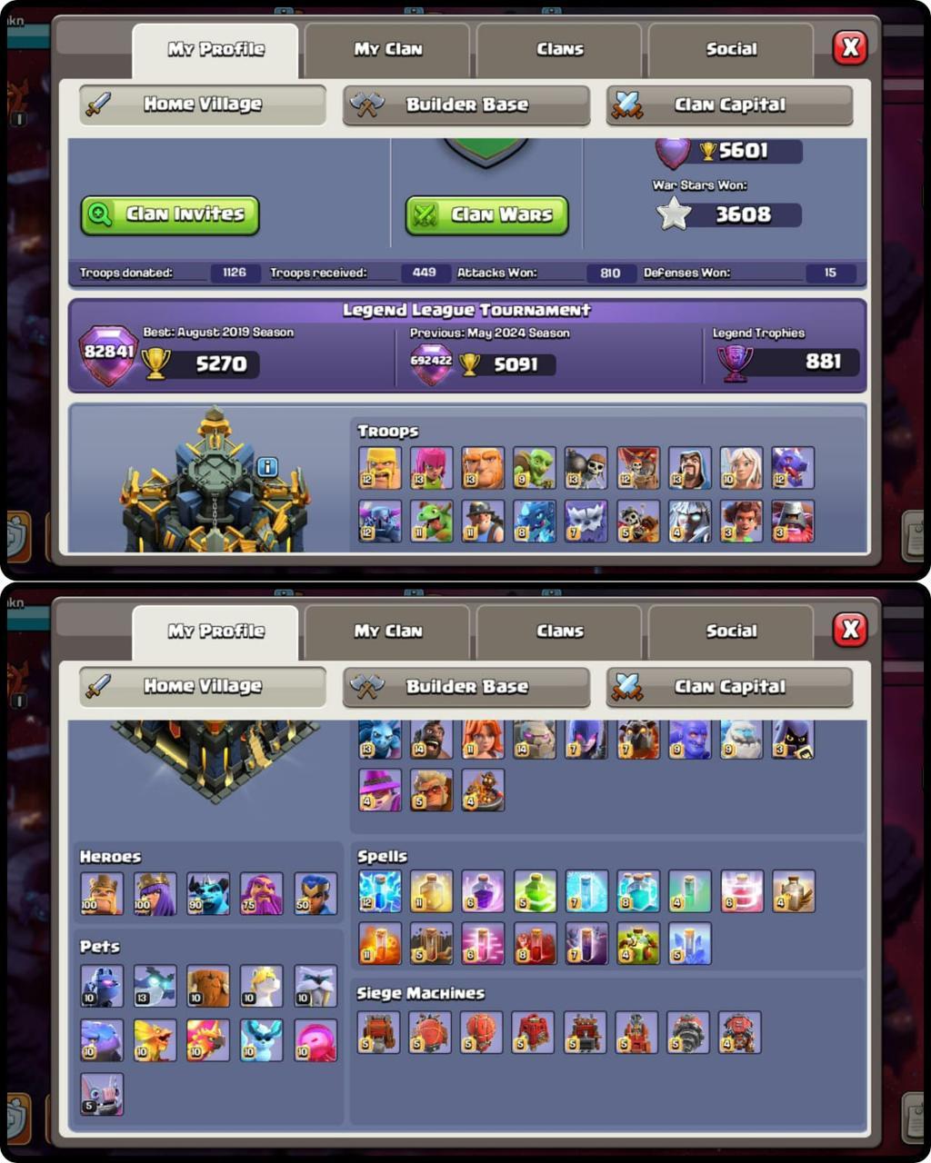 HIGH XP 276 | TH17 FULL MAXED | HERO 100-100-90-75-50 | 1541 MEDALS | GREAT EQUIPMENT | 5918 ATB | MAX B BASE | INSTANT