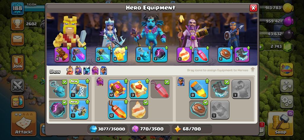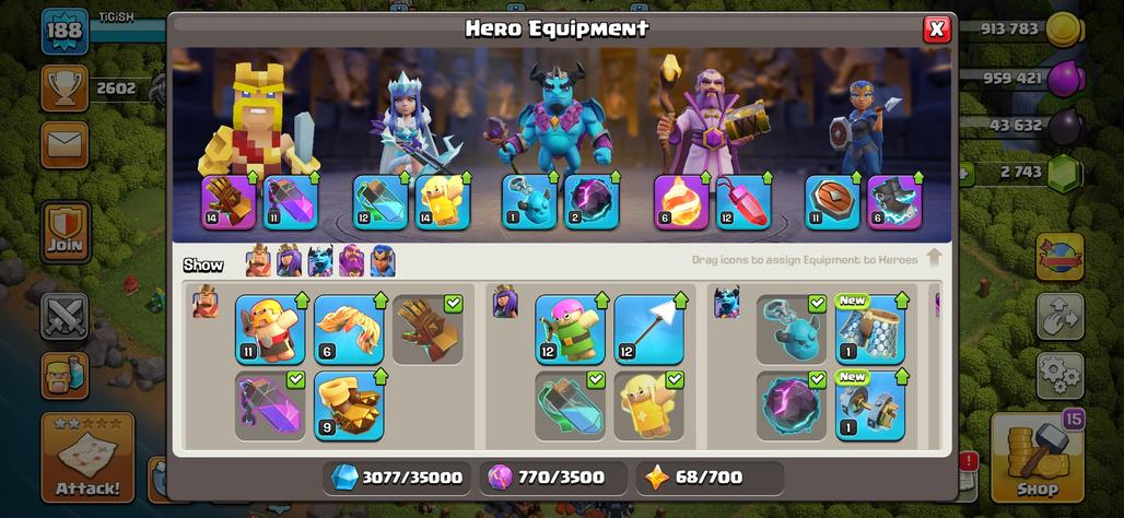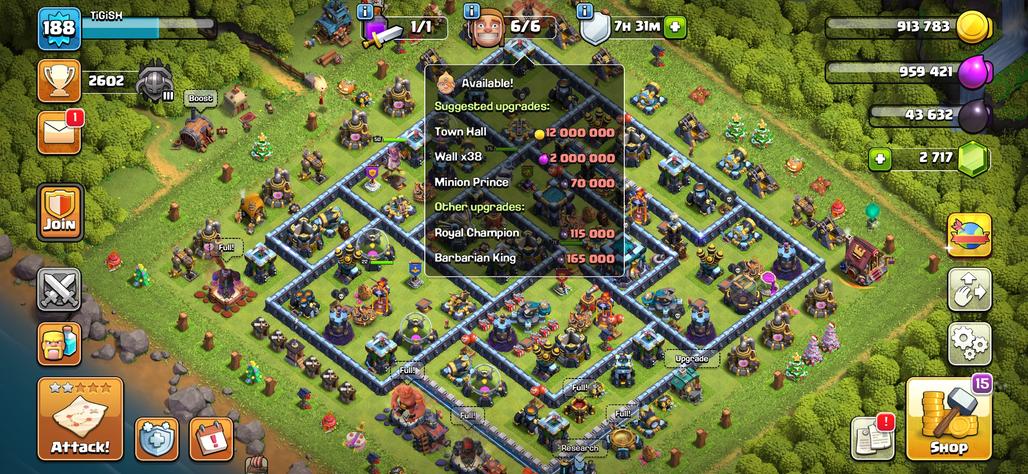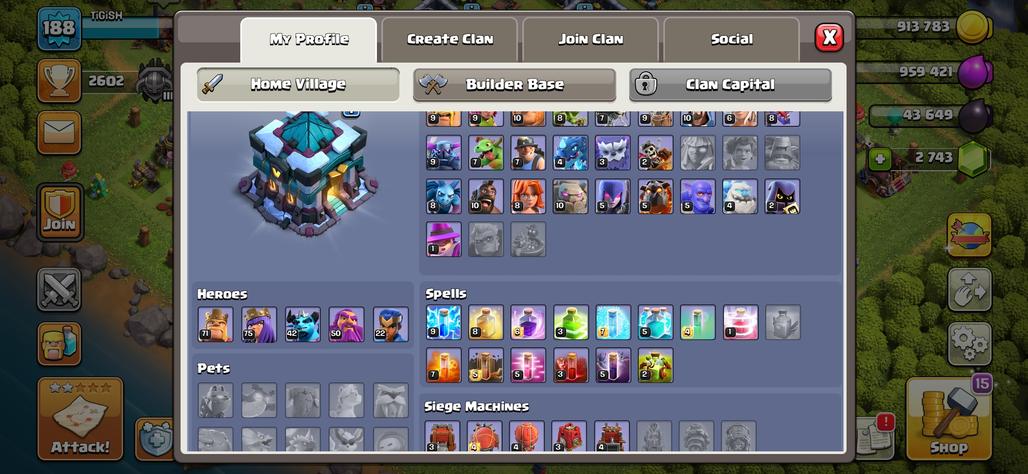 TH13 FULL MAX!! RARE-[188-XP]!! 6-BUILDER!! MAX-[S.BALL]!! HERO-71-75-42-50-22!! LEGEND HIT!!