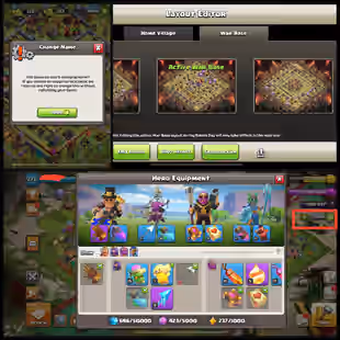 TH17 5-Hero Max | BK100 AQ100 MP90 GW75 RC50 | 4 Hero Skins | Builder Base Max | EB-HP-GA Max | 500 Name Change