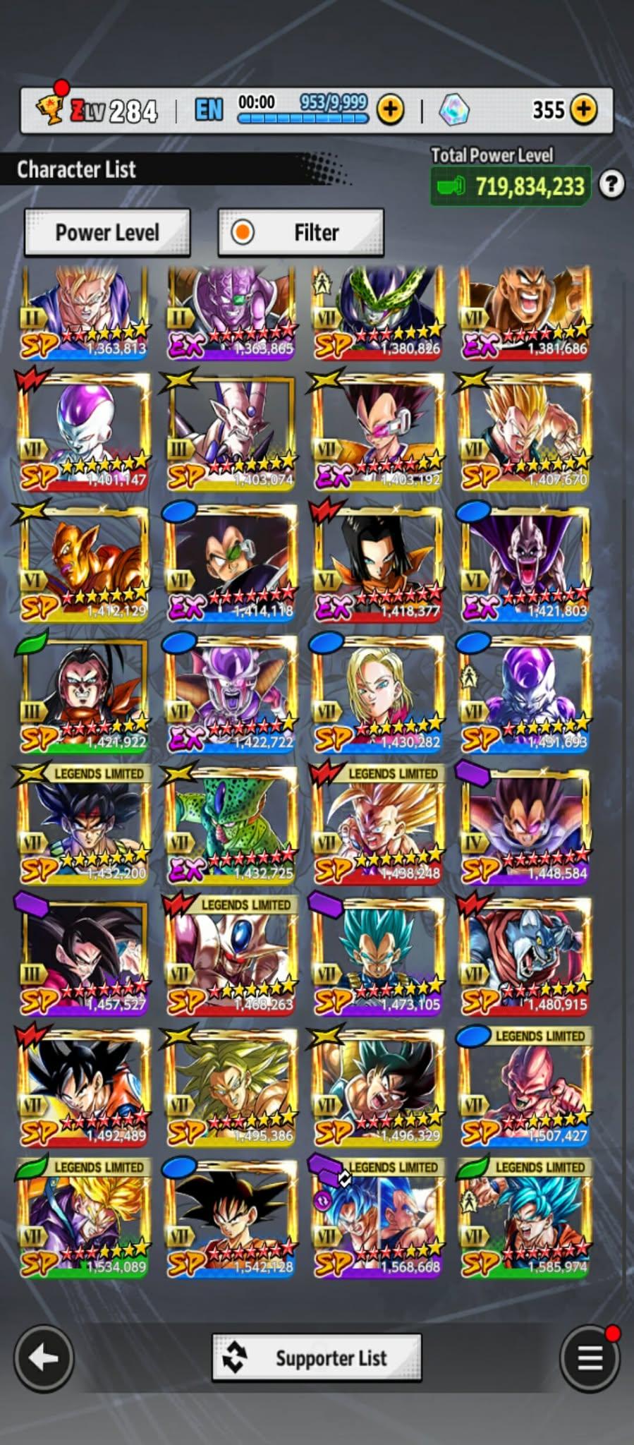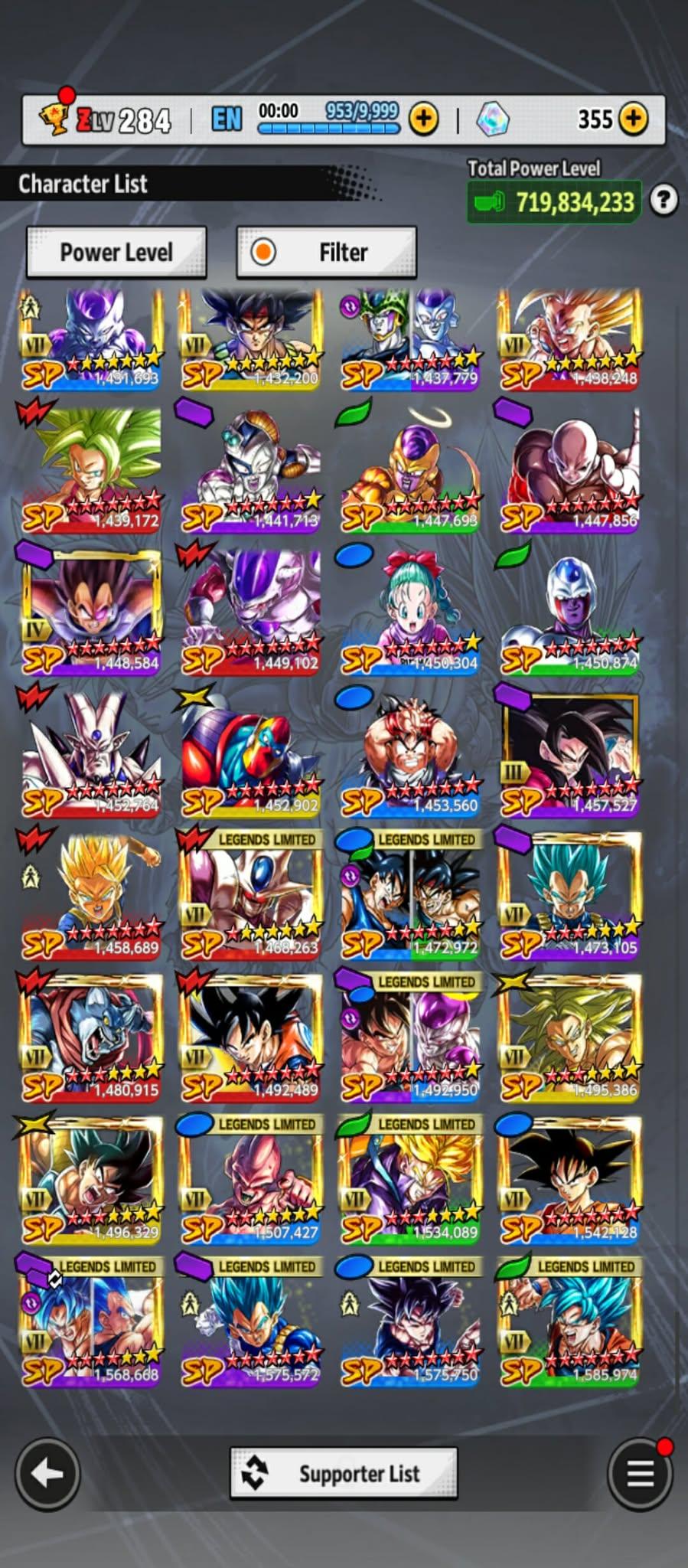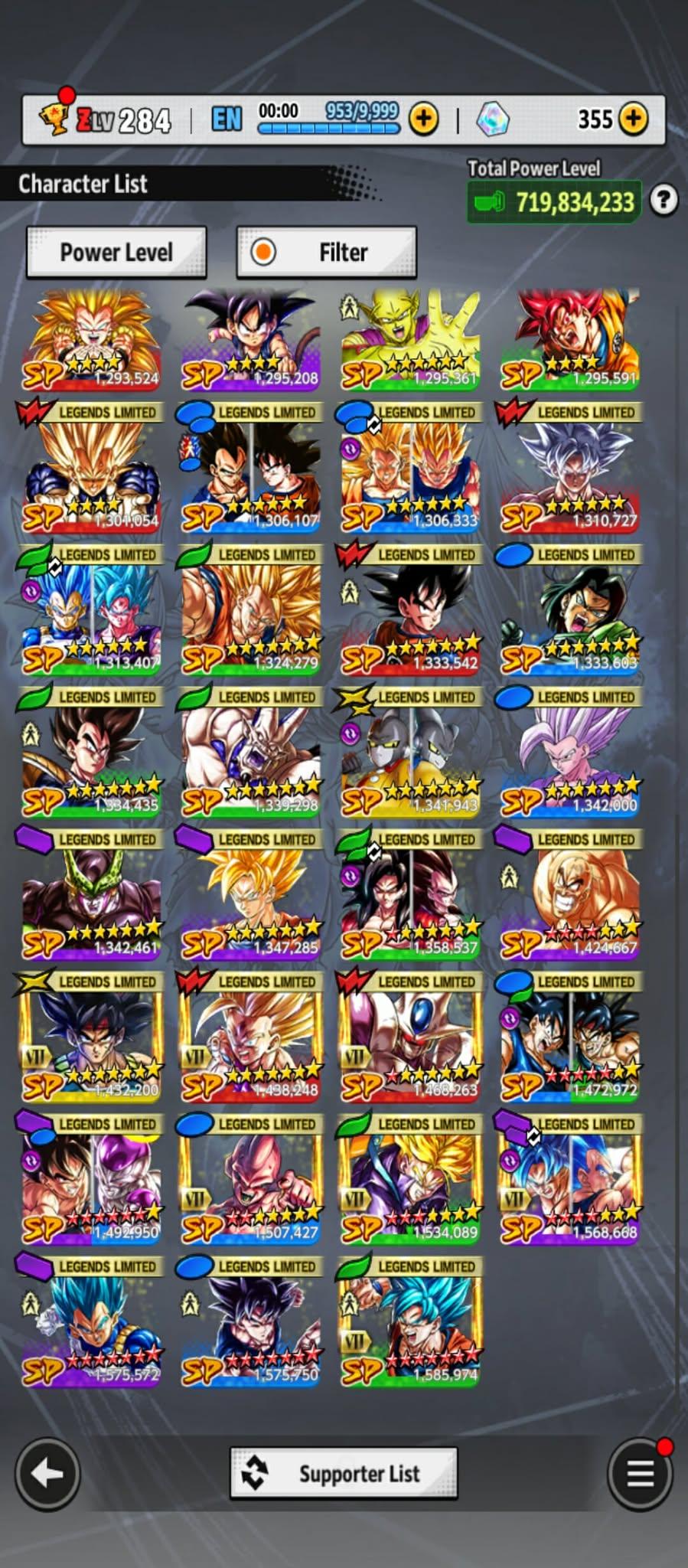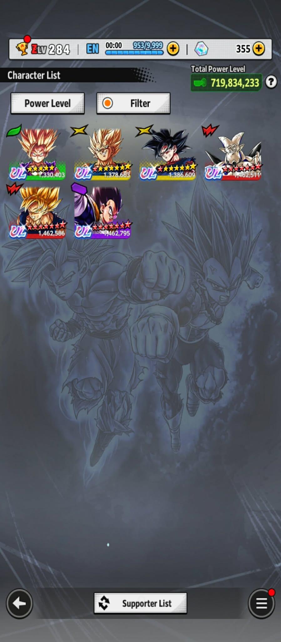 VIP ACC-719m Power+UL Gohan ss2+Uis Goku 8S+UL Majin Vegeta 8S+3 UL Full+59 LL Good Star+ Zenkais 40+Godly Equip 65+ (94