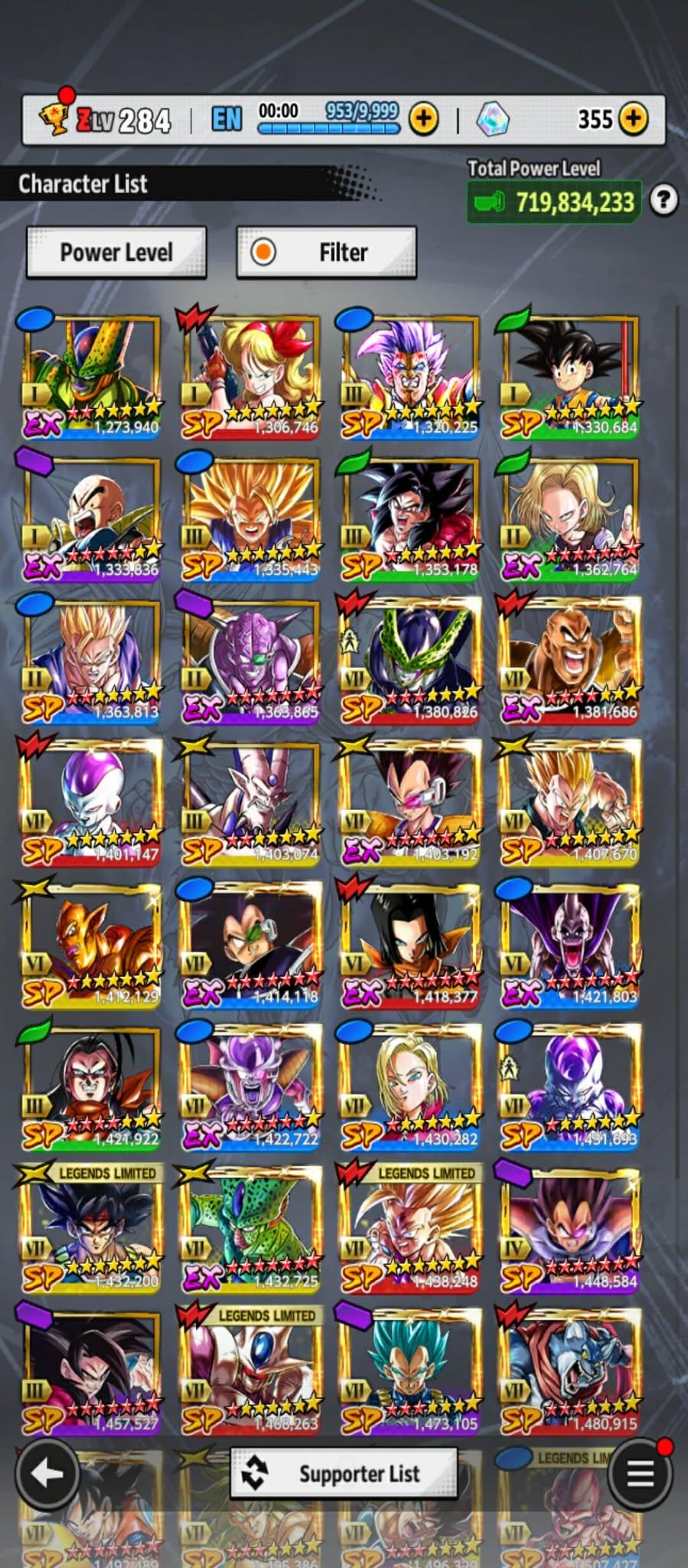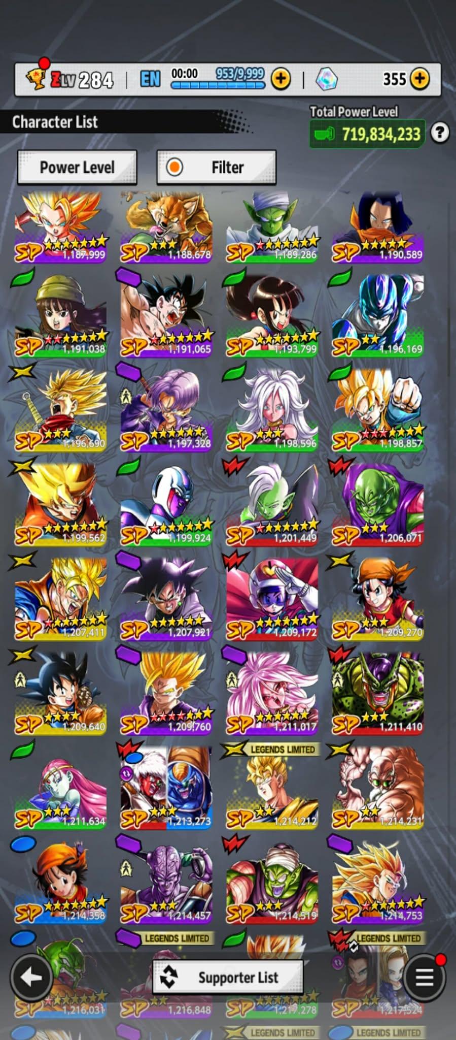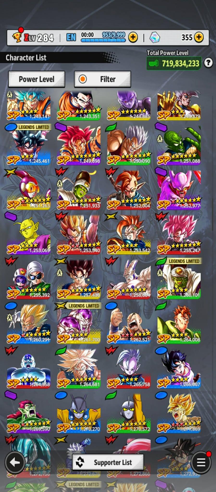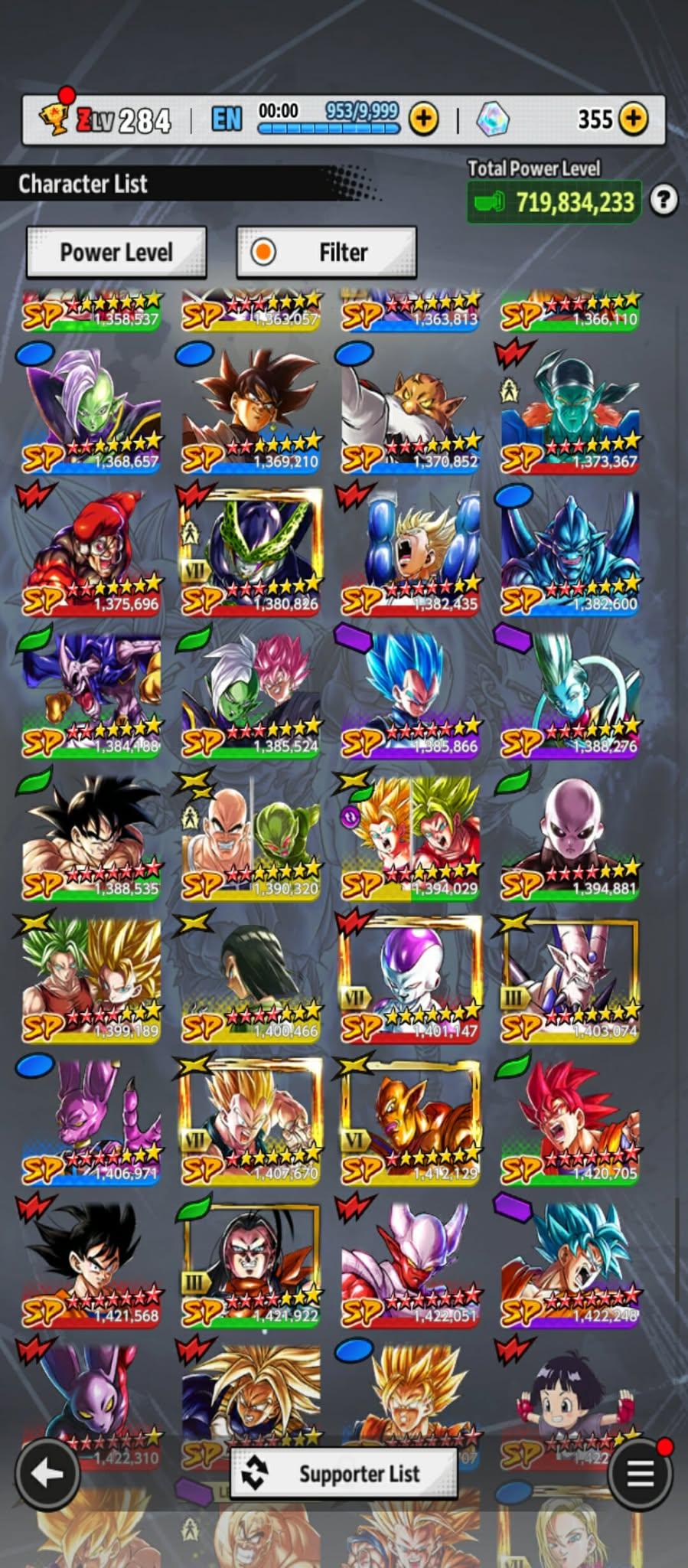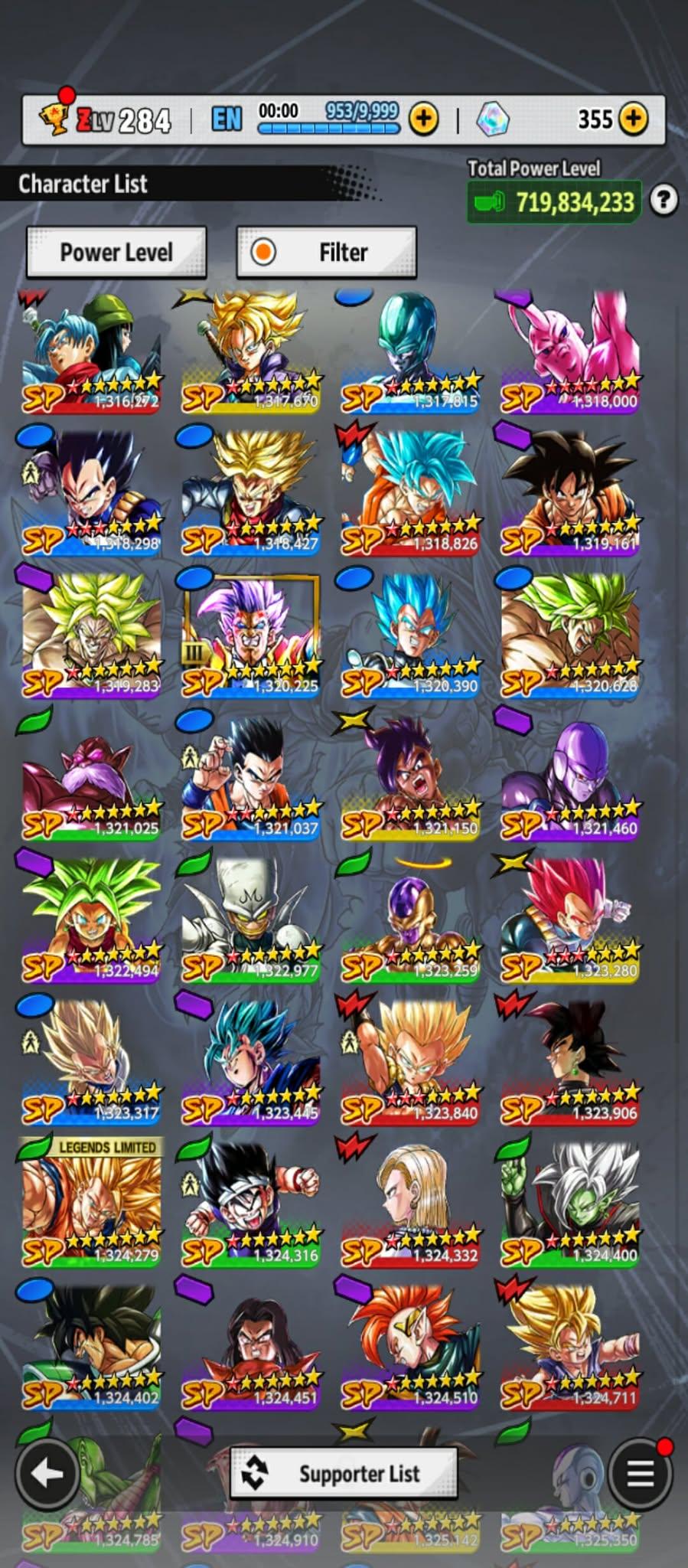 VIP ACC-719m Power+UL Gohan ss2+Uis Goku 8S+UL Majin Vegeta 8S+3 UL Full+59 LL Good Star+ Zenkais 40+Godly Equip 65+ (94